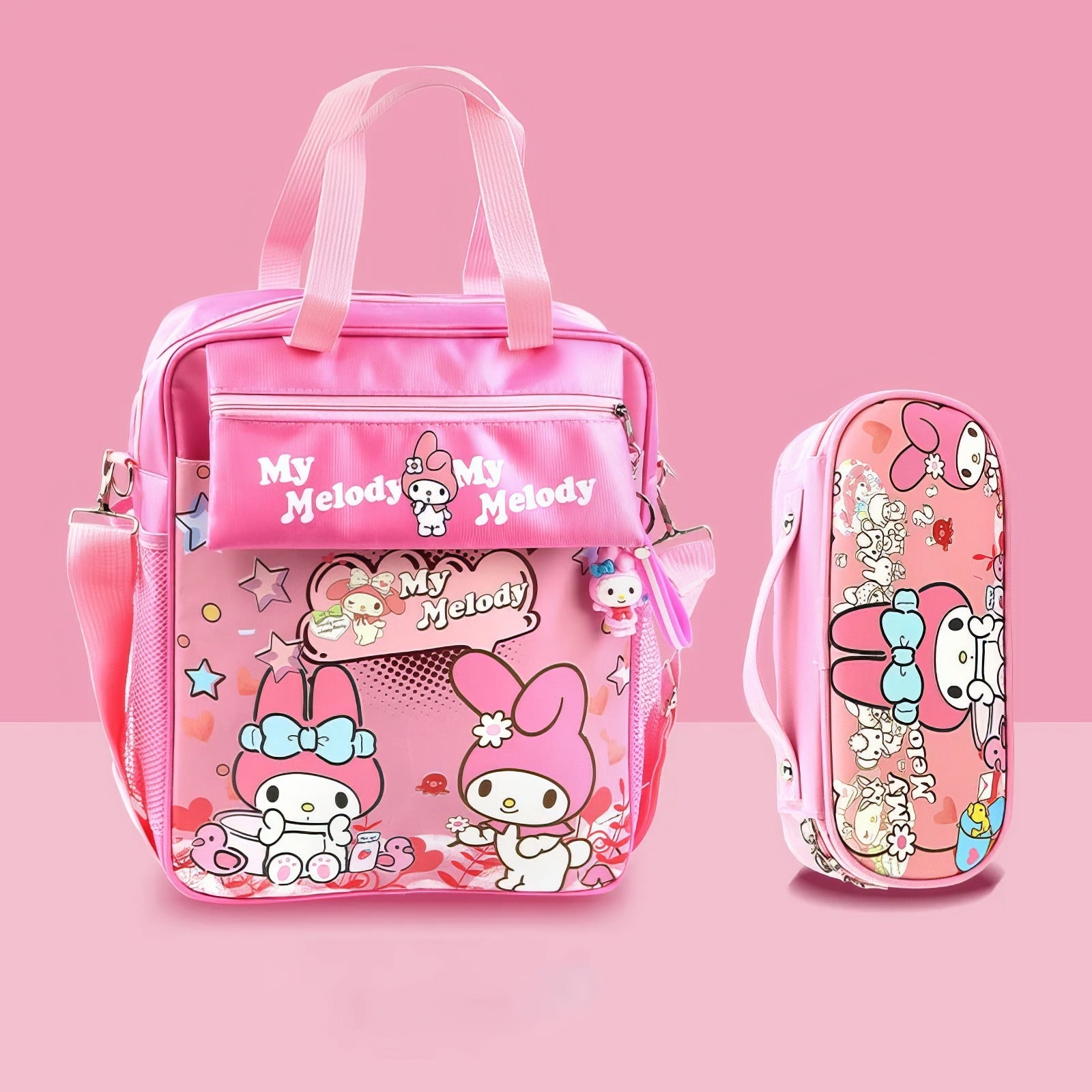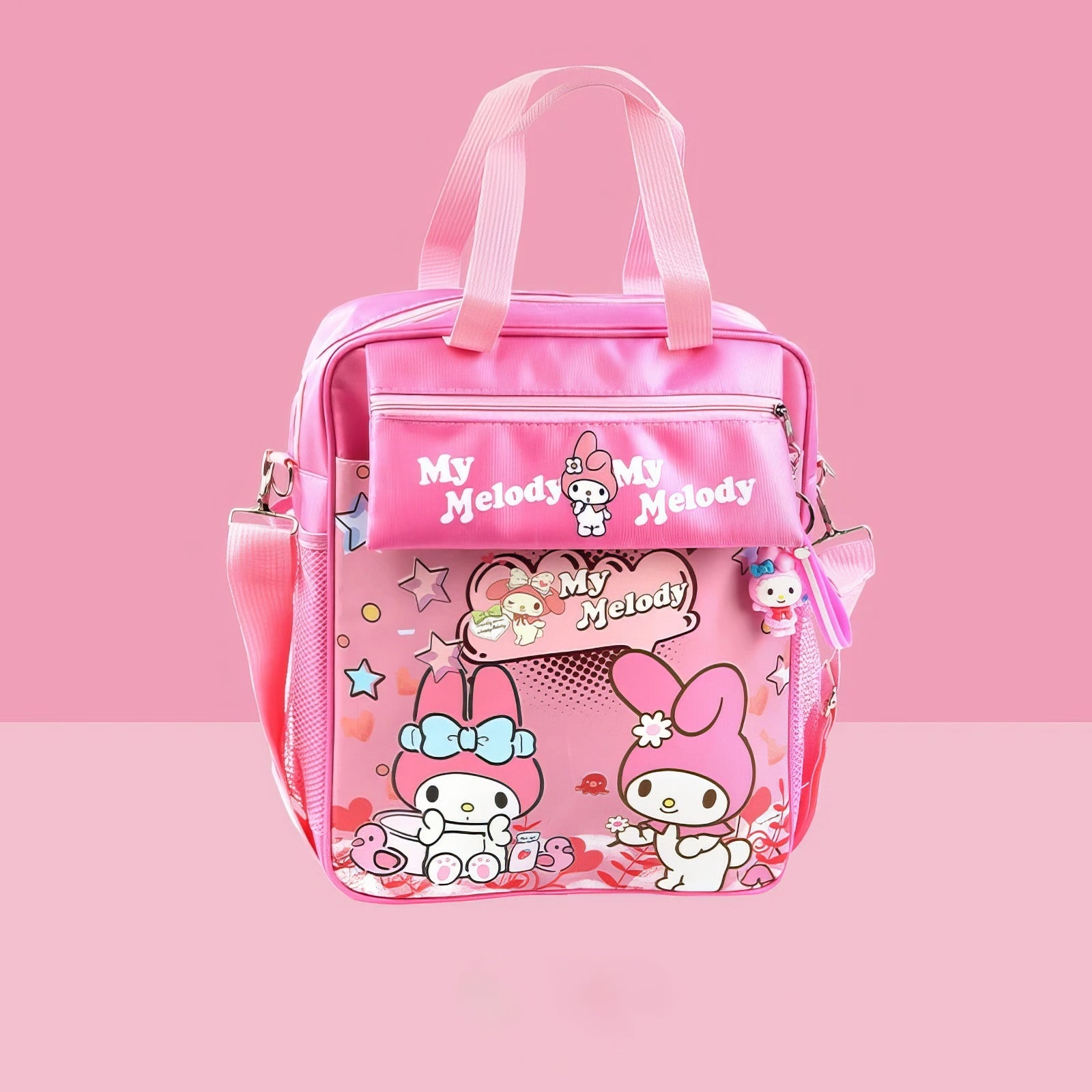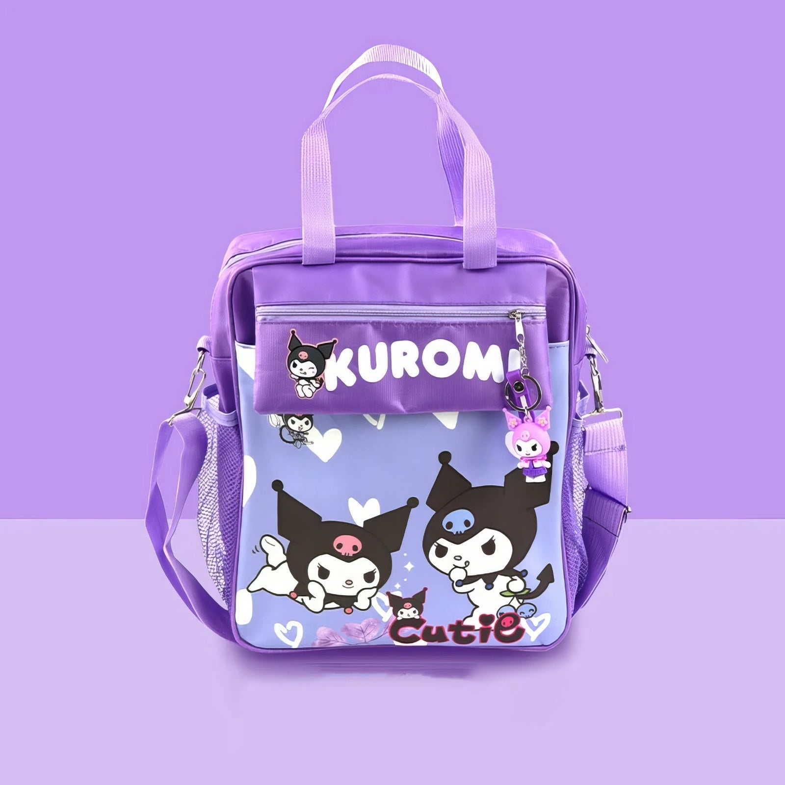 This adorable Cinnamoroll backpack is the perfect storage bag for your little one's essentials. With a cute design featuring Kuromi, My Melody, and Pom Pom Purin, it's sure to bring a smile to their face. Made for girls, it's also suitable for carrying lunch. Stylish and practical, it's a must-have for any young fan.