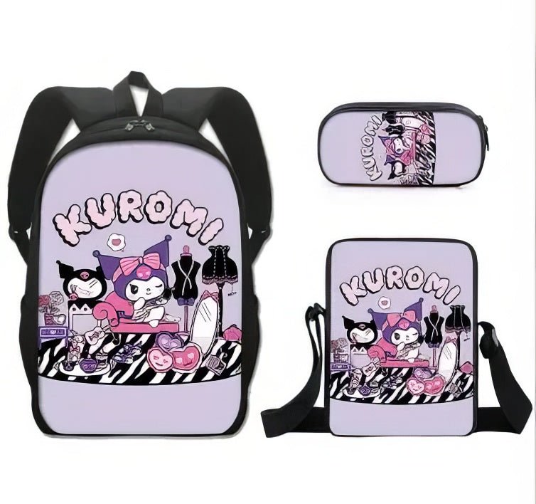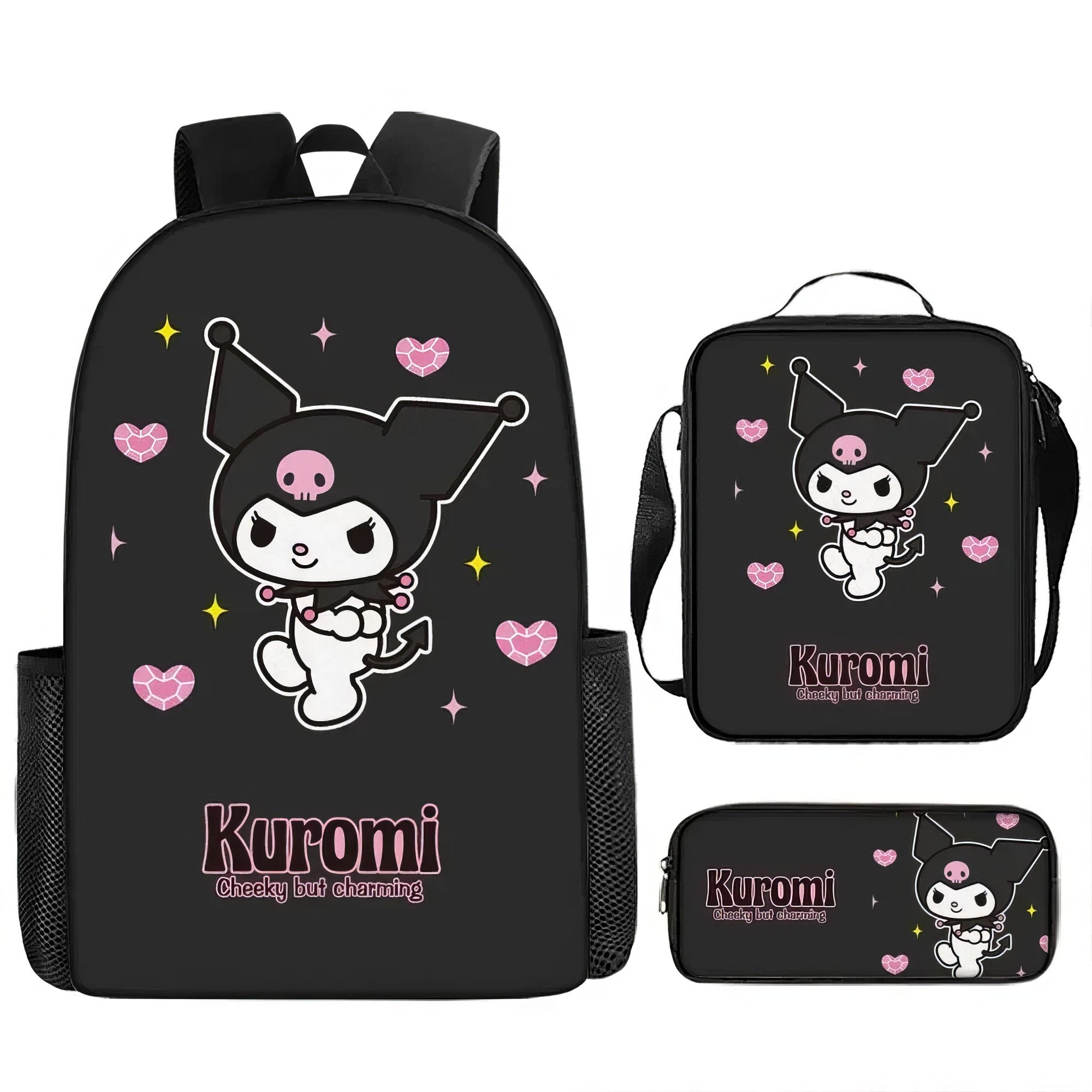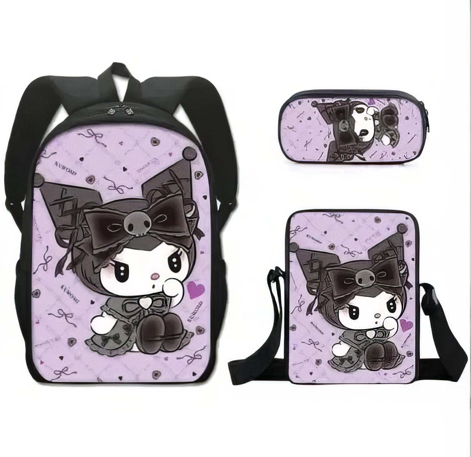 Kuromi Backpack Melody Casual Schoolbag Shoulder Bag Pencil Case 3 3pcs SALE