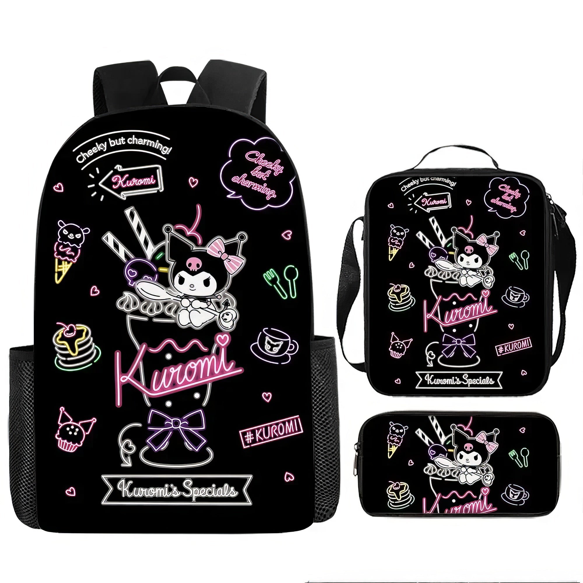 Kuromi Backpack Melody Casual Schoolbag Shoulder Bag Pencil Case 1 3pcs SALE