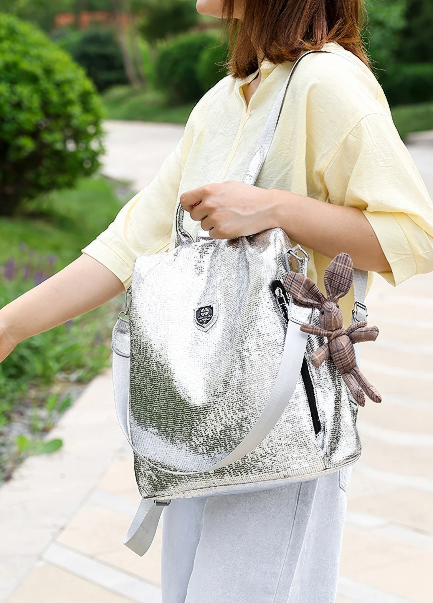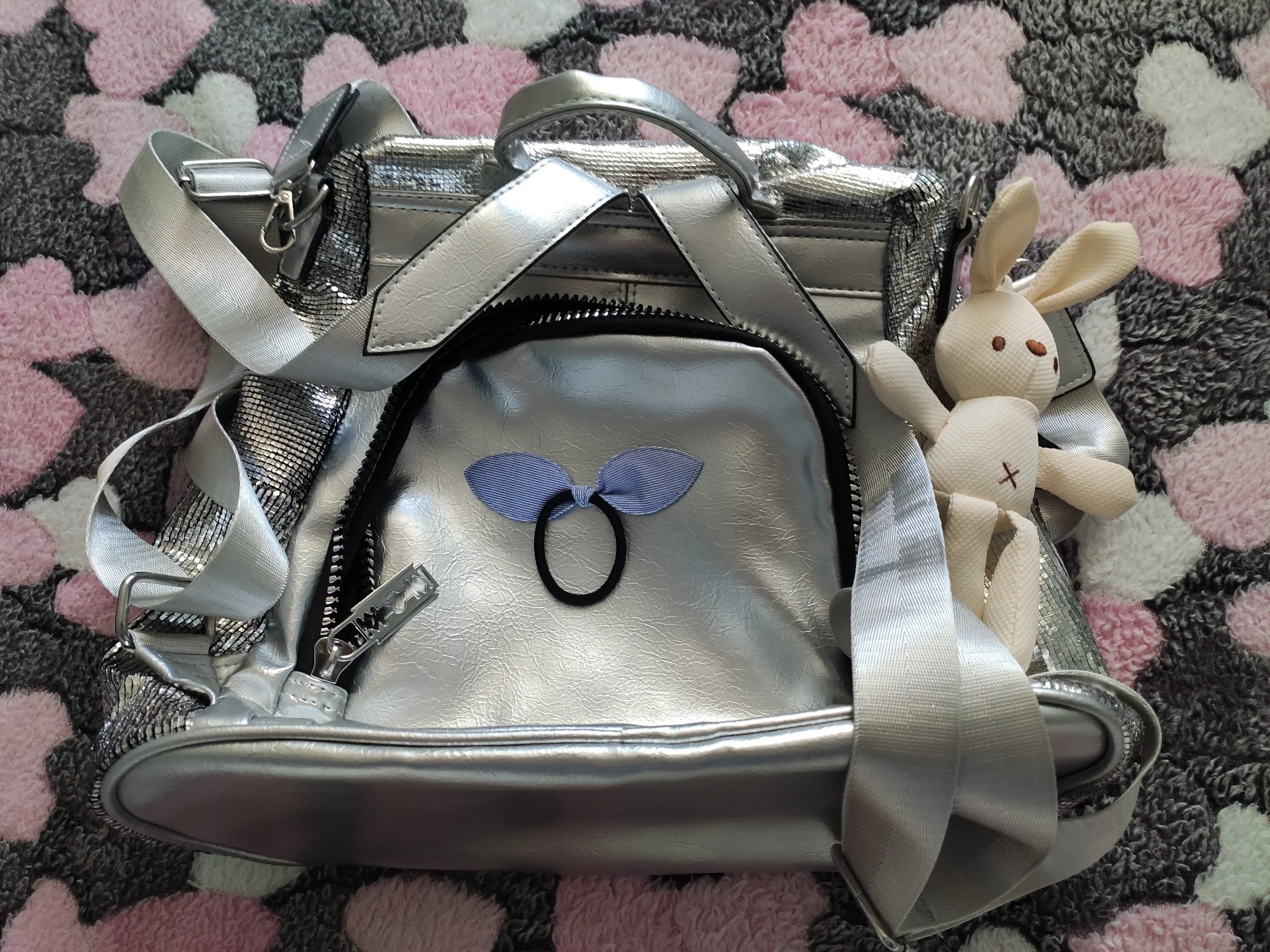 Came what she dreamed of. Very beautiful backpack-bag. High-quality seams, anti-theft system, accessories are not cheap, plus two gifts a bunny and a hair band with ears. I'm 47 and I like this backpack. Chose for her birthday with the donated money.