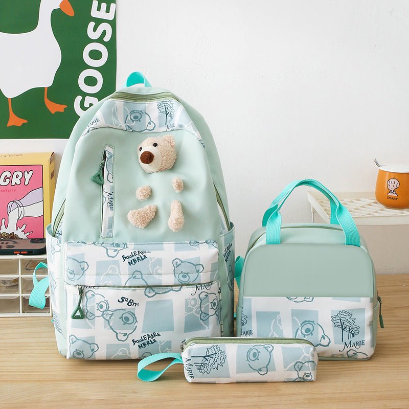 Cute Bear Lunch Box Three-piece Set for Elementary and Middle School Students - Women's Schoolbags Green SALE