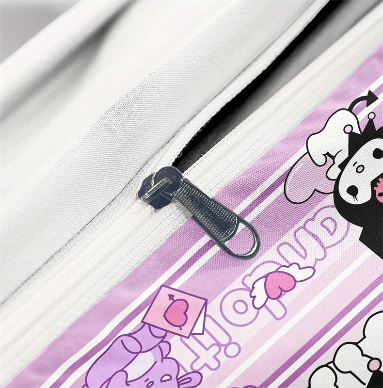 Kuromi Duvet Cover and Pillowcase Twill Weave Polyester Camping Bedding Machine Washable