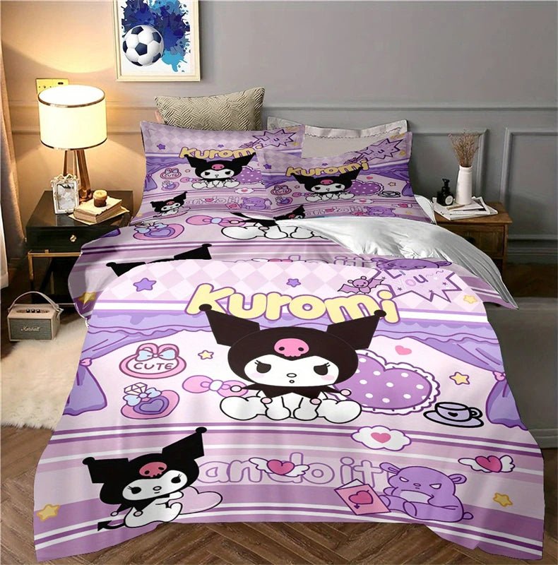 Kuromi Duvet Cover and Pillowcase Twill Weave Polyester Camping Bedding Machine Washable SALE