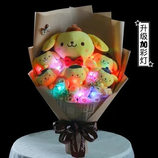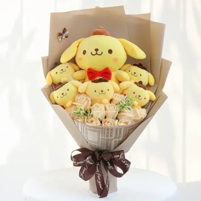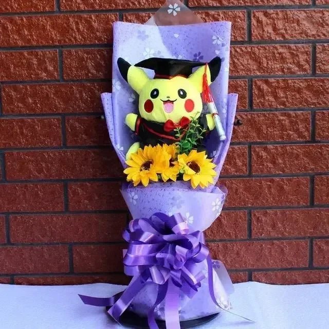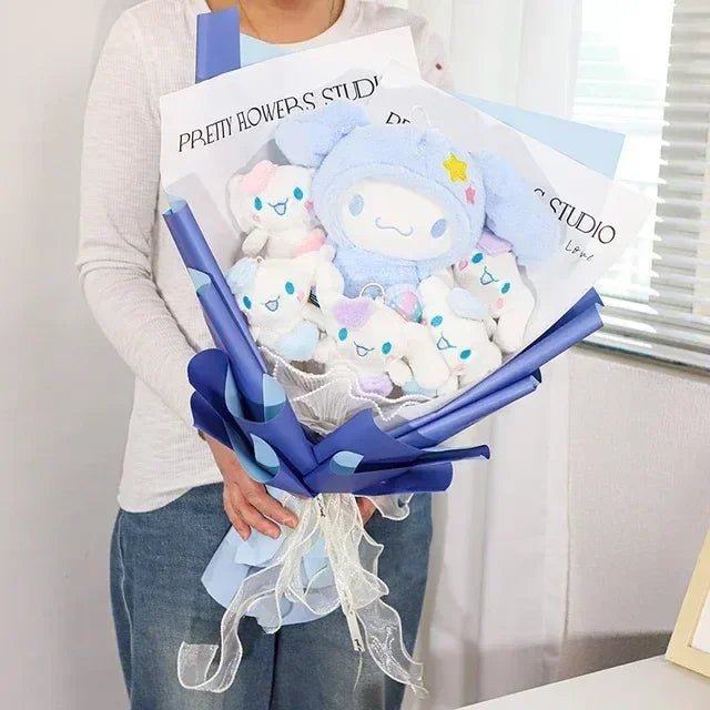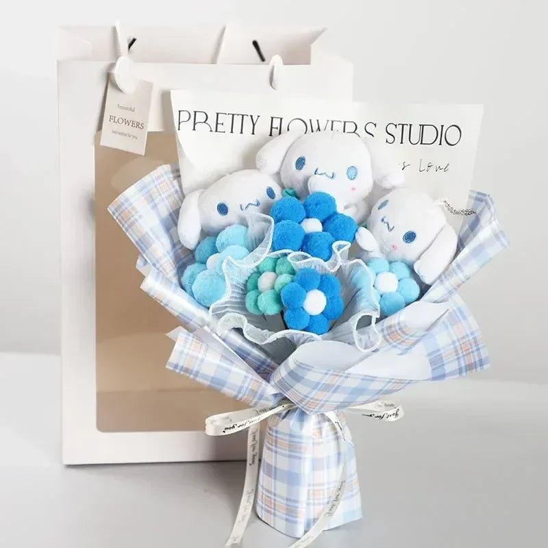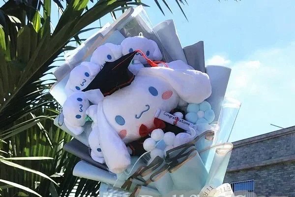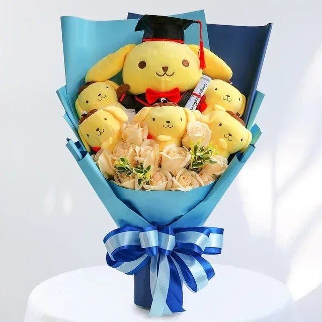 This Sanrio bouquet features beloved characters Cinnamoroll, Melody, and Kuromi wearing graduation hats. Let them add a touch of cuteness to your special day. Made with high-quality materials, this cartoon bouquet is perfect for any graduation ceremony or celebration.