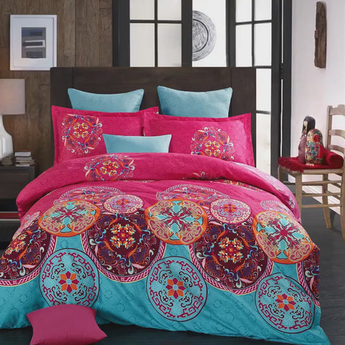 The Bohemian Mandala Floral Bedding Set transforms your bedroom with its eye-catching ethnic design, blending comfort and style. Its lightweight polyester fabric ensures year-round coziness, while the vibrant mandala print adds a touch of cultural flair. Perfect for boho enthusiasts, this set enhances any bedroom with its durability and easy-care properties, making it a valuable addition for restful nights and chic decor.