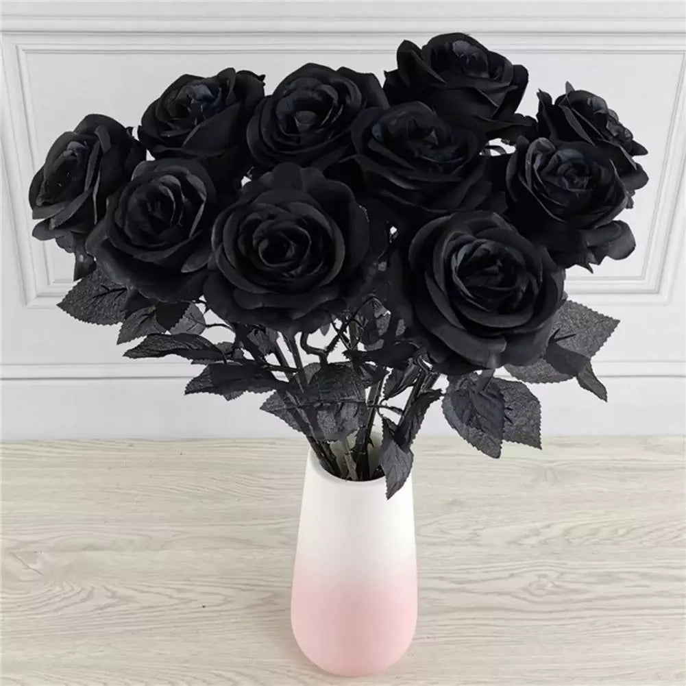 Add a touch of elegance to your home or party with this 10-piece Black Rose Bouquet. Each artificial flower is carefully crafted to replicate the beauty of a real rose, providing long-lasting decor without the need for maintenance. Perfect for adding a pop of color and sophistication to any space.