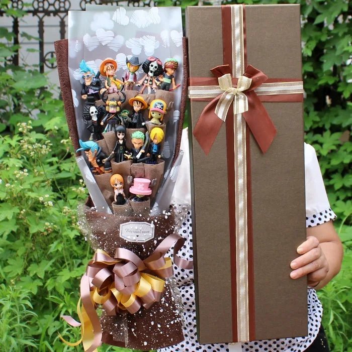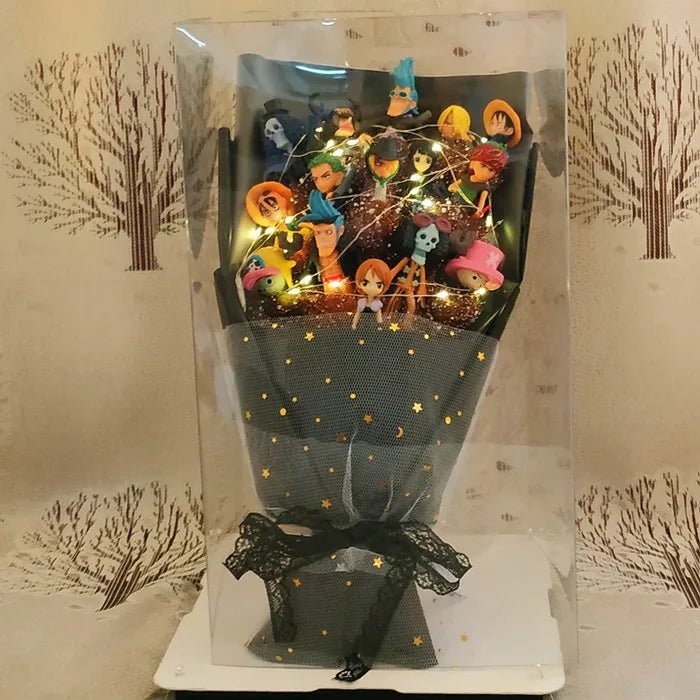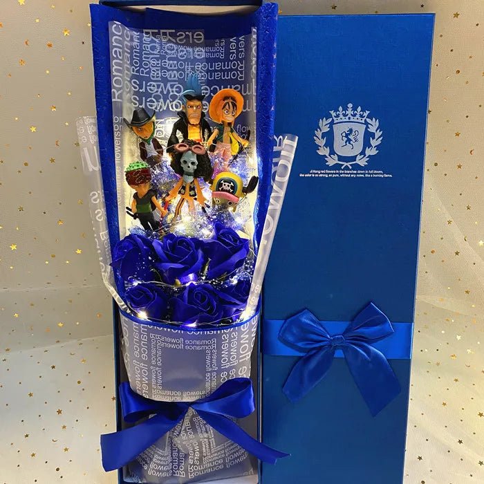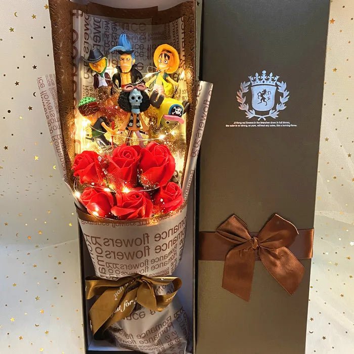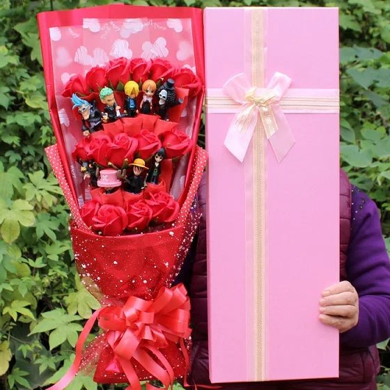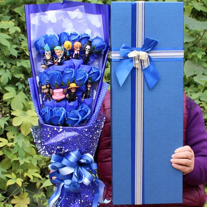 Experience the ultimate fusion of delicate beauty and thrilling action with our One Piece Bouquet. This stunning bouquet is not only expertly crafted with soap flowers, but also features the iconic main character Luffy from the beloved anime series. Show your love for One Piece and add a unique touch to any room with this one-of-a-kind bouquet.