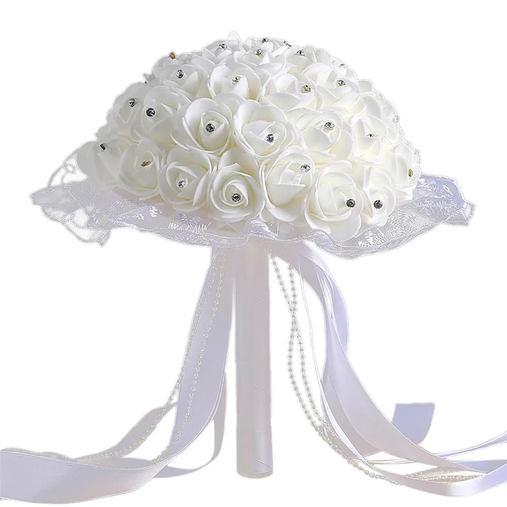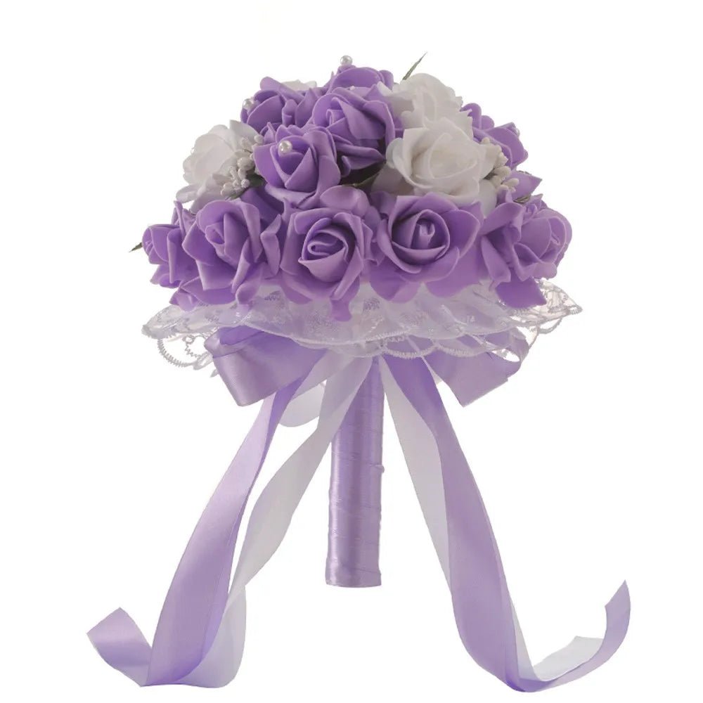 This stunning prom bouquet is perfect for bridesmaids and brides alike. Made with high-quality artificial silk roses and adorned with delicate lace, it adds a touch of elegance to any special occasion. Experience the beauty of real flowers without the worry of wilting or allergies.