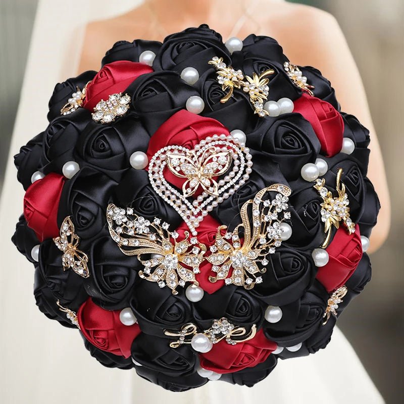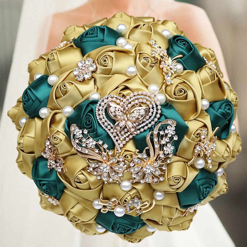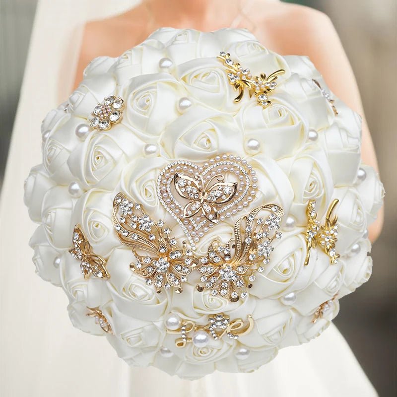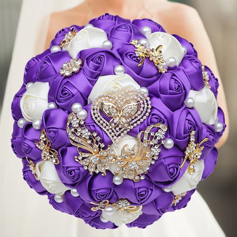 This luxurious prom bouquet is embellished with pearls, making it the perfect accessory for any wedding party. The pearls add an elegant touch, elevating your look on this special occasion. Make a statement and stand out with this stunning accessory.