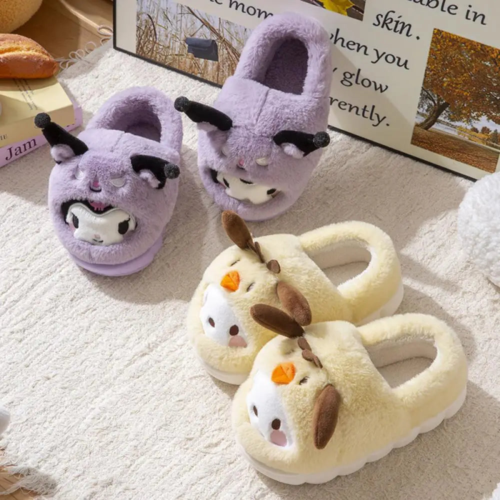 These Hello Kitty winter slippers combine kawaii aesthetics with practical warmth. The cartoon shape featuring Hello Kitty, Cinnamoroll, and Kuromi adds a cute touch, while the plush material and anti-slip sole ensure comfort and safety at home. Perfect as a festival gift for Sanrio fans!