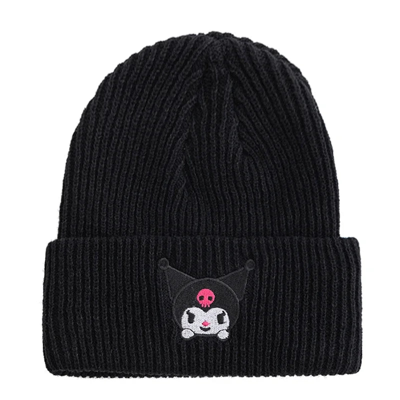 Hello Kitty Beanie Hat Women Cute Cartoon Cinnamoroll Melody Kuromi Winter Knitted Cap Kuromi Black 54cm-58cm SALE