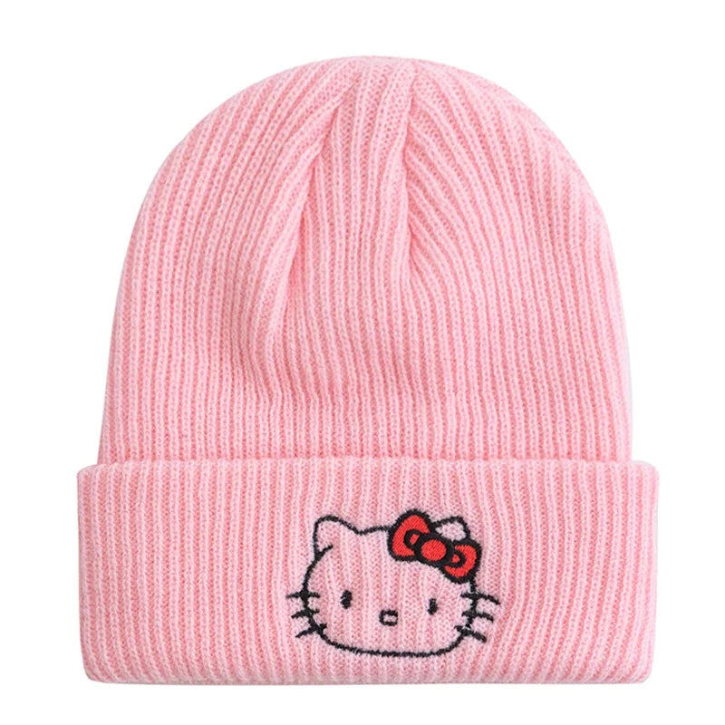 Hello Kitty Beanie Hat Women Cute Cartoon Cinnamoroll Melody Kuromi Winter Knitted Cap Hello Kitty Pink 54cm-58cm SALE