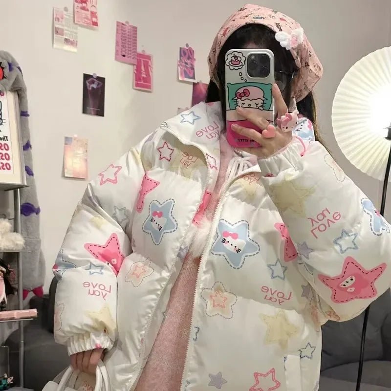 Stay warm and stylish in this Hello Kitty Hoodie by Sanrio. The cotton-padded outwear provides both comfort and warmth, while the loose fit allows for easy movement. With a thicken design, you'll stay cozy during colder weather. Perfect for fans of the beloved Kawaii character.