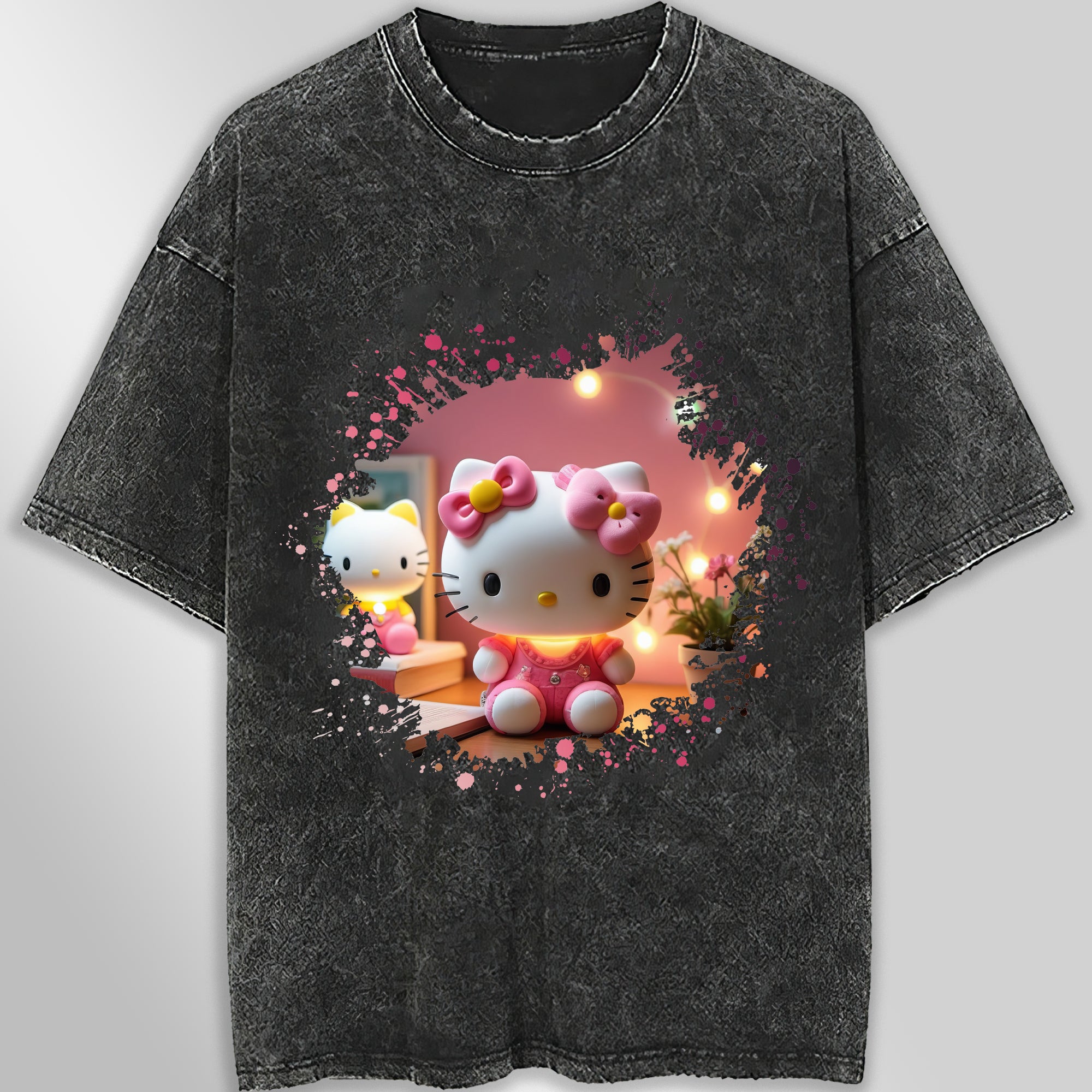 Hello kitty tee shirt - 3D pink cute funny graphic tees - Unisex wide sleeve style