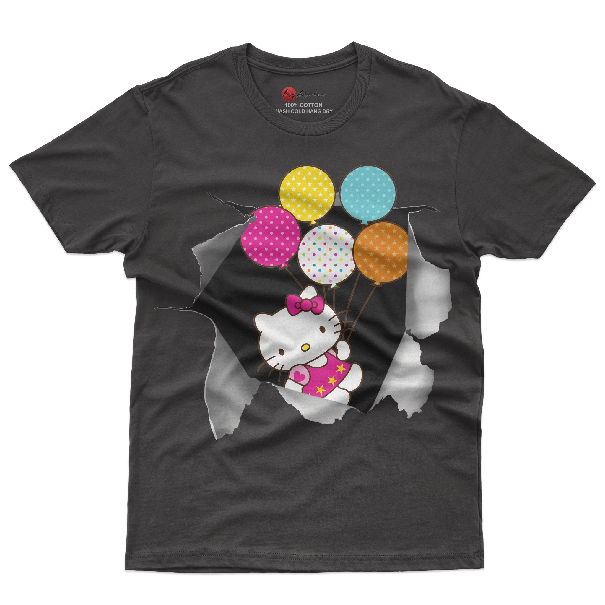 Hello kitty tee shirt and balloons - Cute funny graphic tees - Unisex novelty cotton t shirt