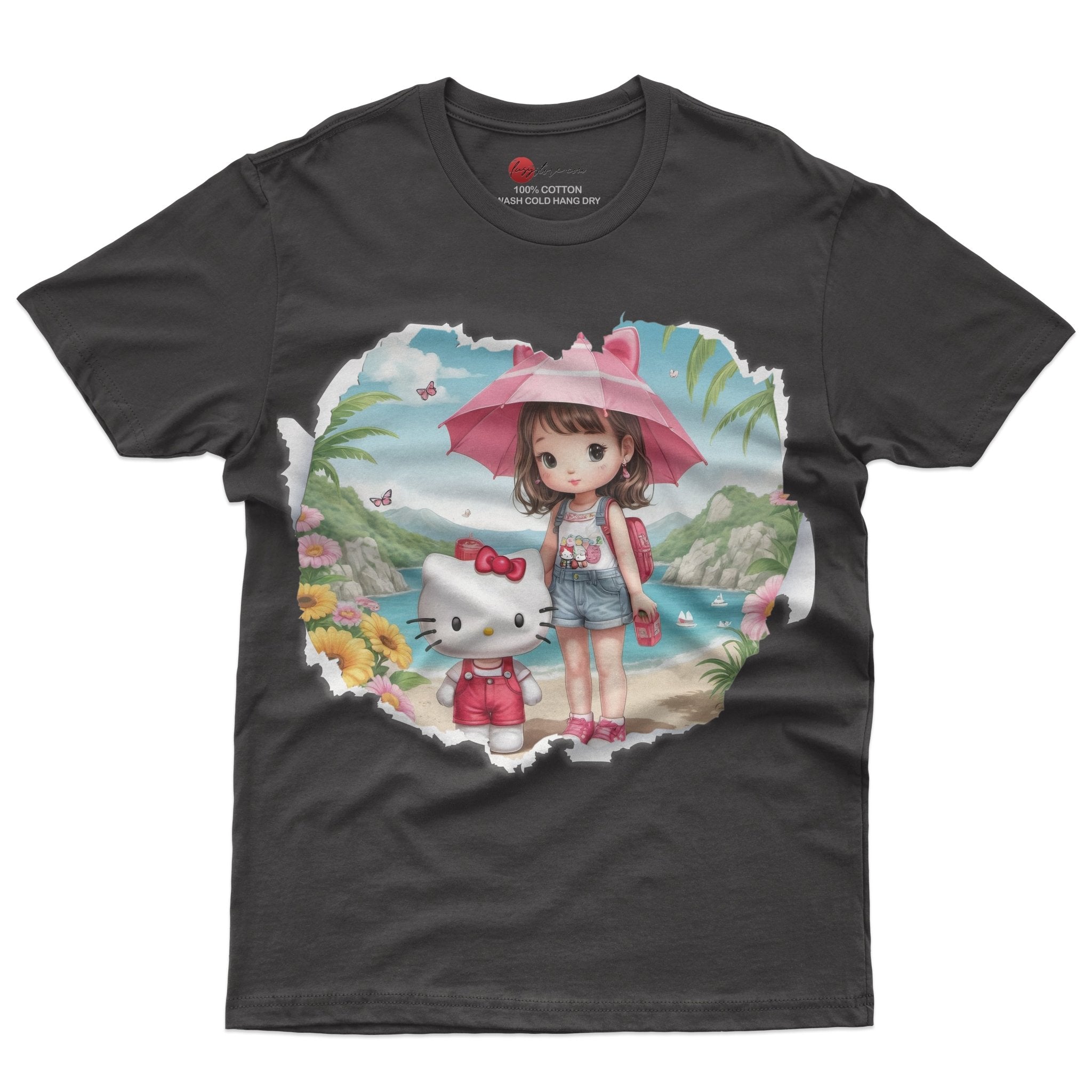 This Hello Kitty t-shirt features an adorable anime girl and humorous graphic design. Made from 100% cotton, it's both stylish and comfortable. Perfect for anime fans or anyone looking for a cute and playful tee.