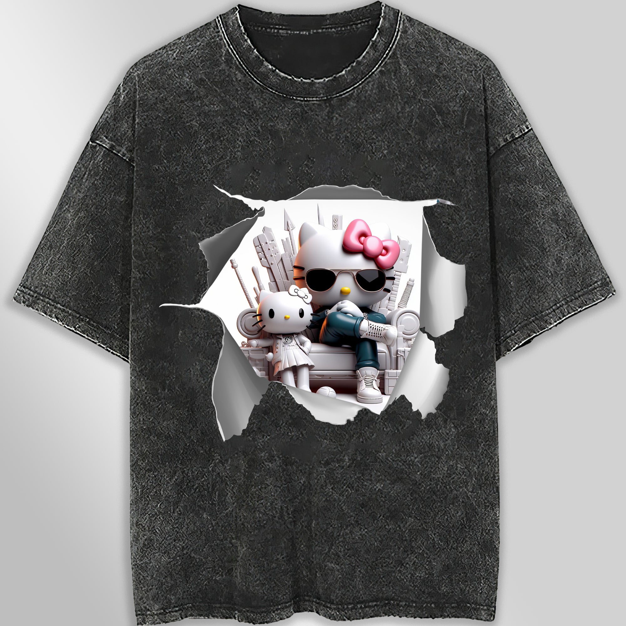 Introducing our Hello Kitty tee shirt, featuring a cool and funny graphic design in a unisex, wide-sleeve style. Express your love for Hello Kitty with this unique and comfortable tee. Perfect for any occasion, this shirt is a must-have for any fan!