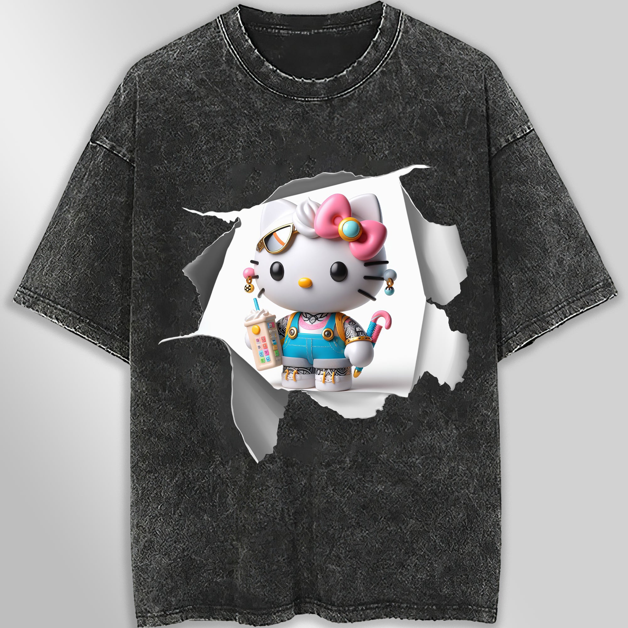 Upgrade your wardrobe with our Hello Kitty tee shirt. Featuring a cool and funny graphic design, this unisex tee is perfect for fans of the iconic character. The wide sleeve style adds a trendy touch to this must-have piece. Get ready to make a statement with this one-of-a-kind tee!