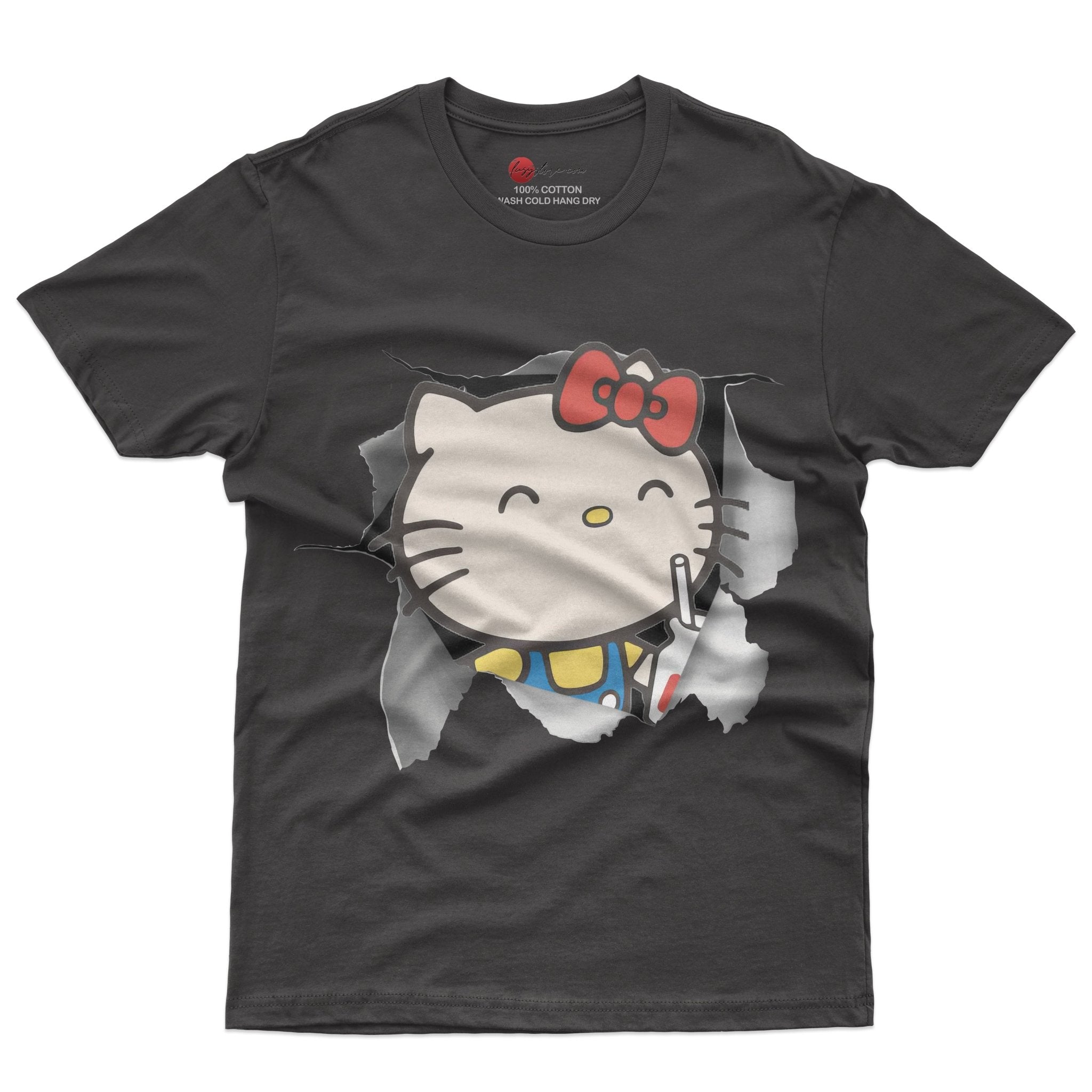 Introducing our Hello Kitty tee shirt! Made with high-quality cotton for a comfortable fit. The cute funny graphic adds a touch of humor to your wardrobe. Perfect for both men and women. Get ready to stand out in this unique novelty tee!