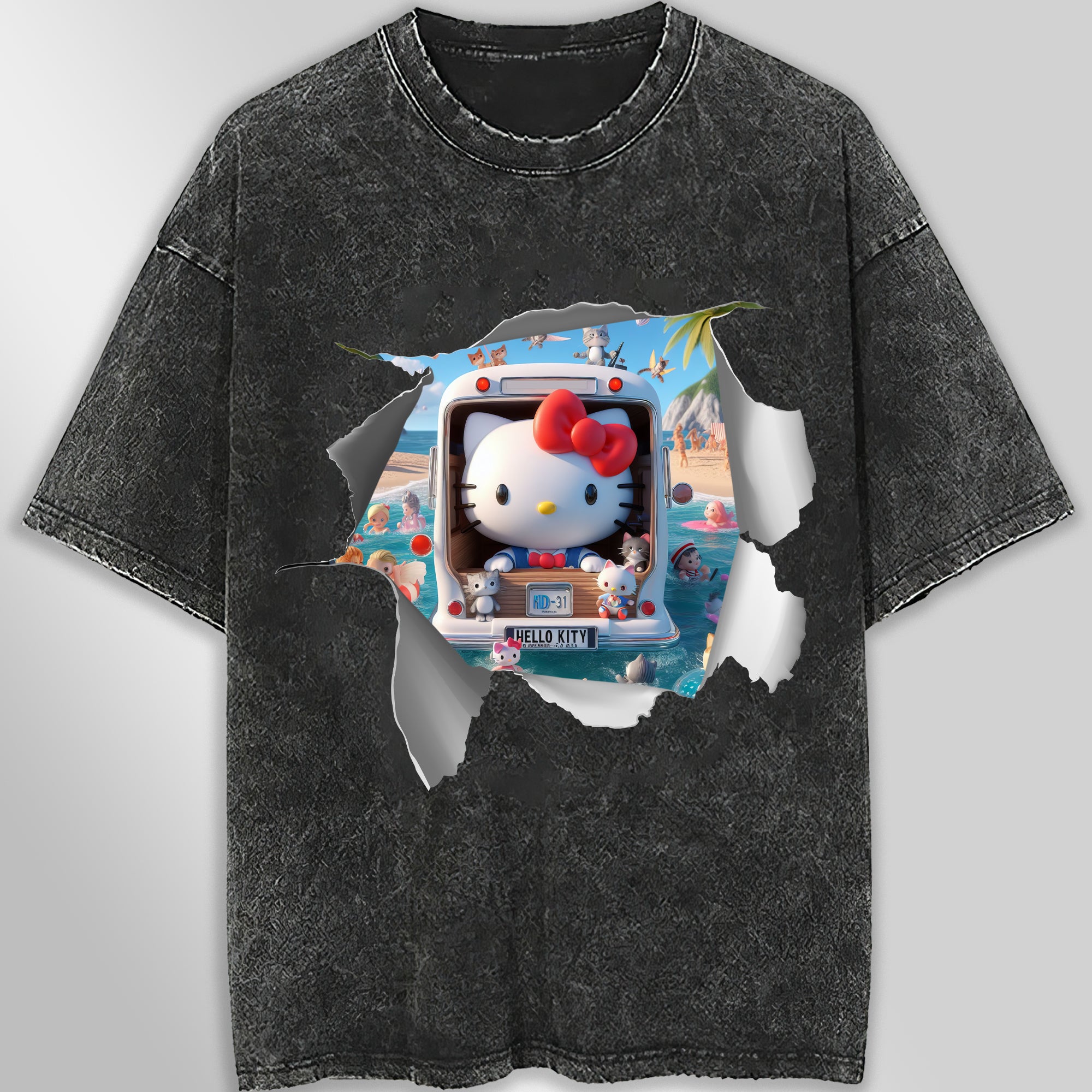 Hello kitty tee shirt - Hello kitty beach funny graphic tees - Unisex wide sleeve style Dark Gray SALE