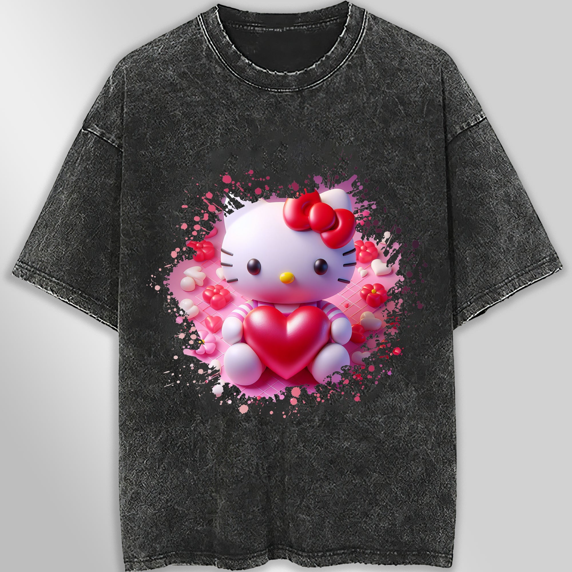 This unisex tee shirt features the lovable Hello Kitty with a heart graphic, showcasing a cute and unique wide sleeve style. Made with high-quality materials, this tee offers both comfort and style for any Hello Kitty fan. Perfect for casual wear or as a gift.
