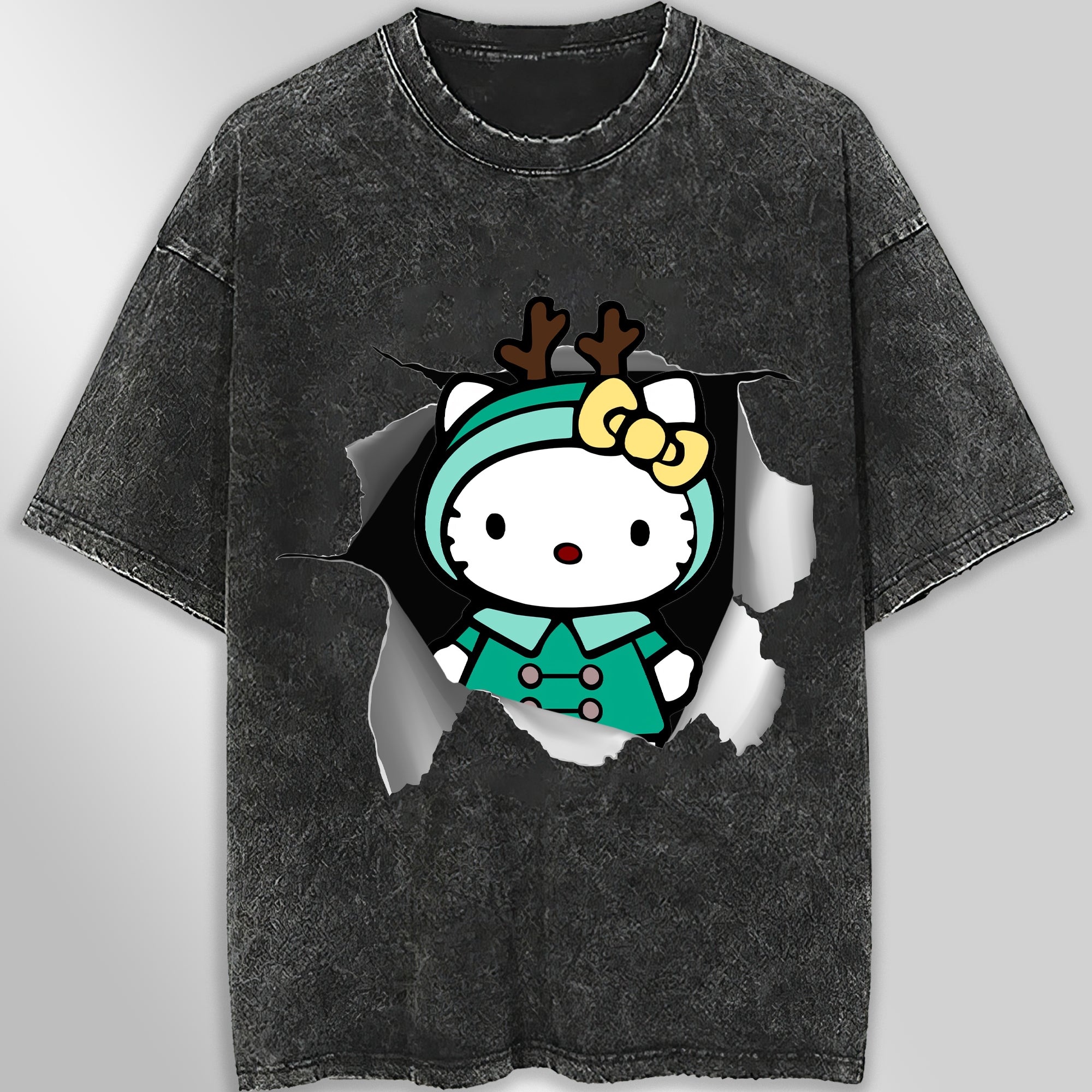 Hello kitty tee shirt - Reindeer hello kitty cute funny graphic tees - Unisex wide sleeve style