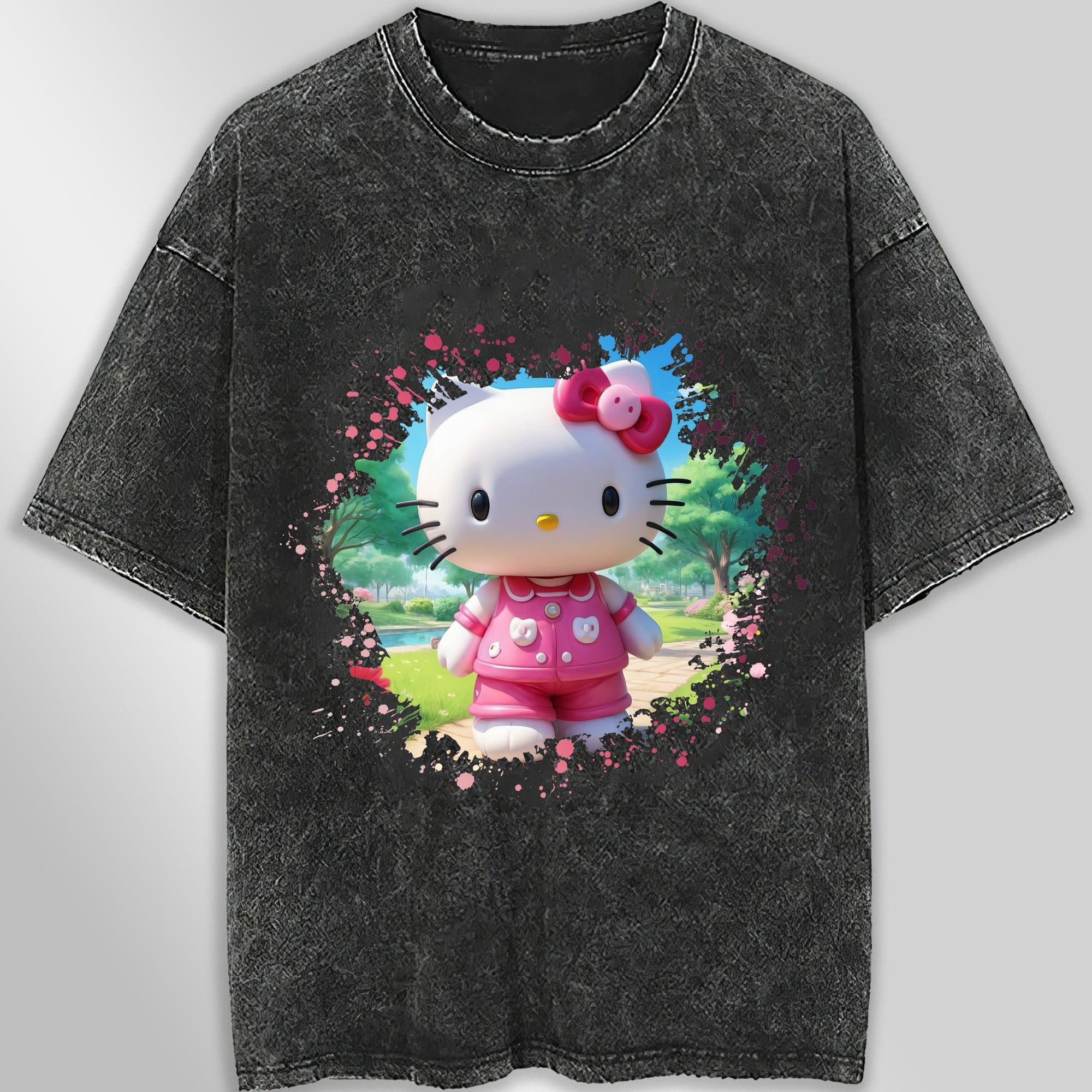 Hello kitty tee shirt - Spring cute funny graphic tees - Unisex wide sleeve style