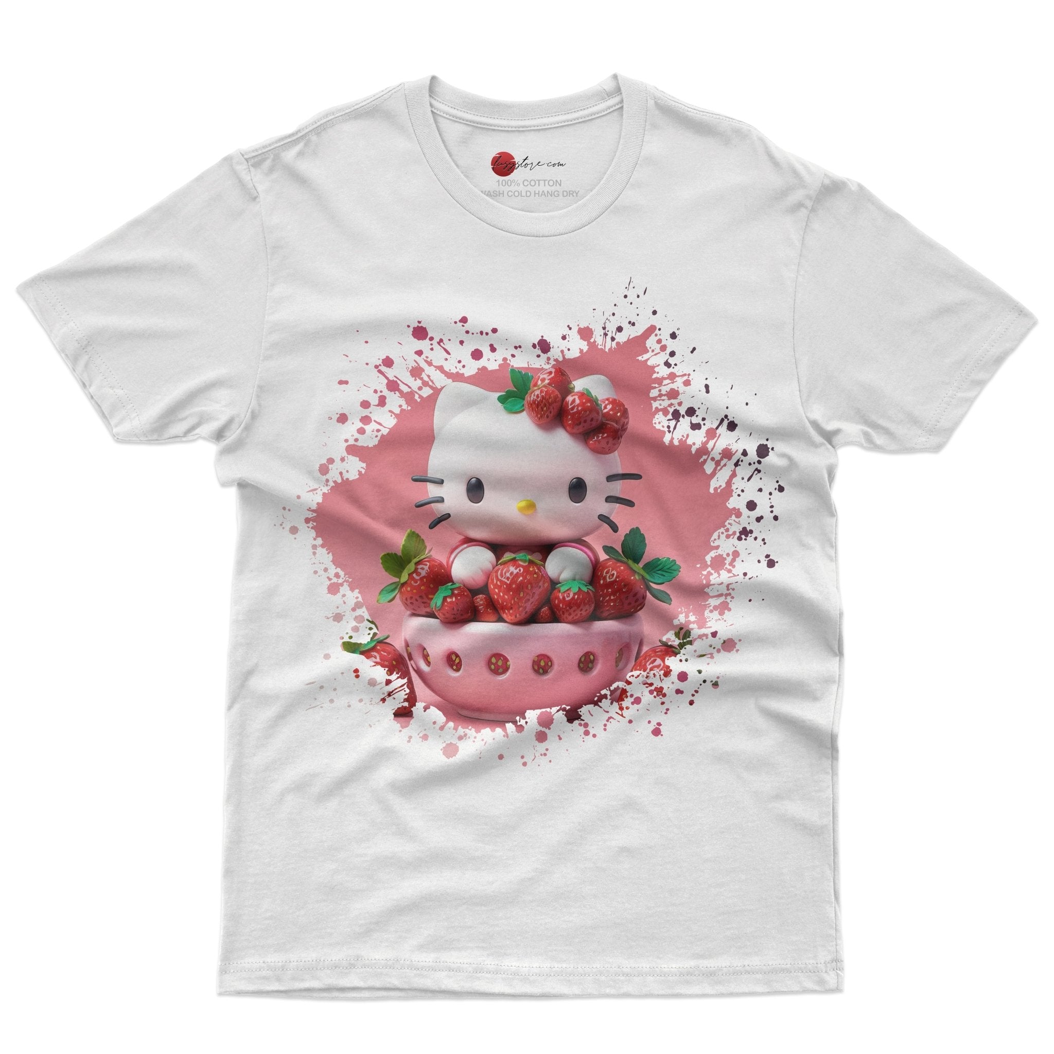 Hello kitty tee shirt - Strawberry Hello Kitty cute funny graphic tees - Unisex novelty cotton t shirt White SALE