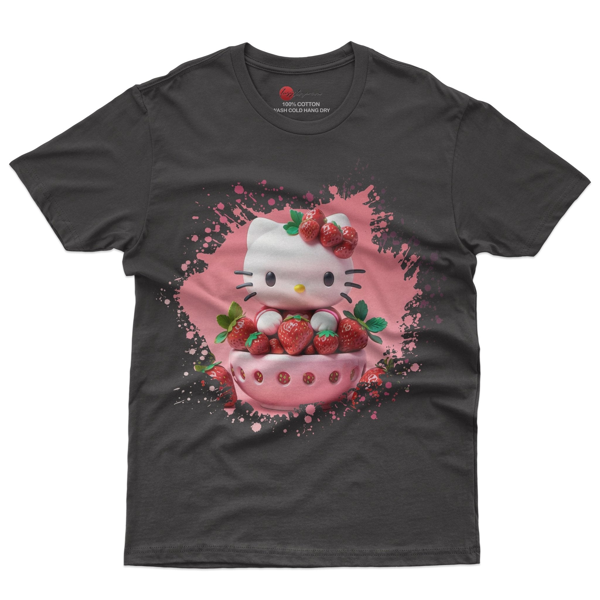 Hello kitty tee shirt - Strawberry Hello Kitty cute funny graphic tees - Unisex novelty cotton t shirt Black SALE