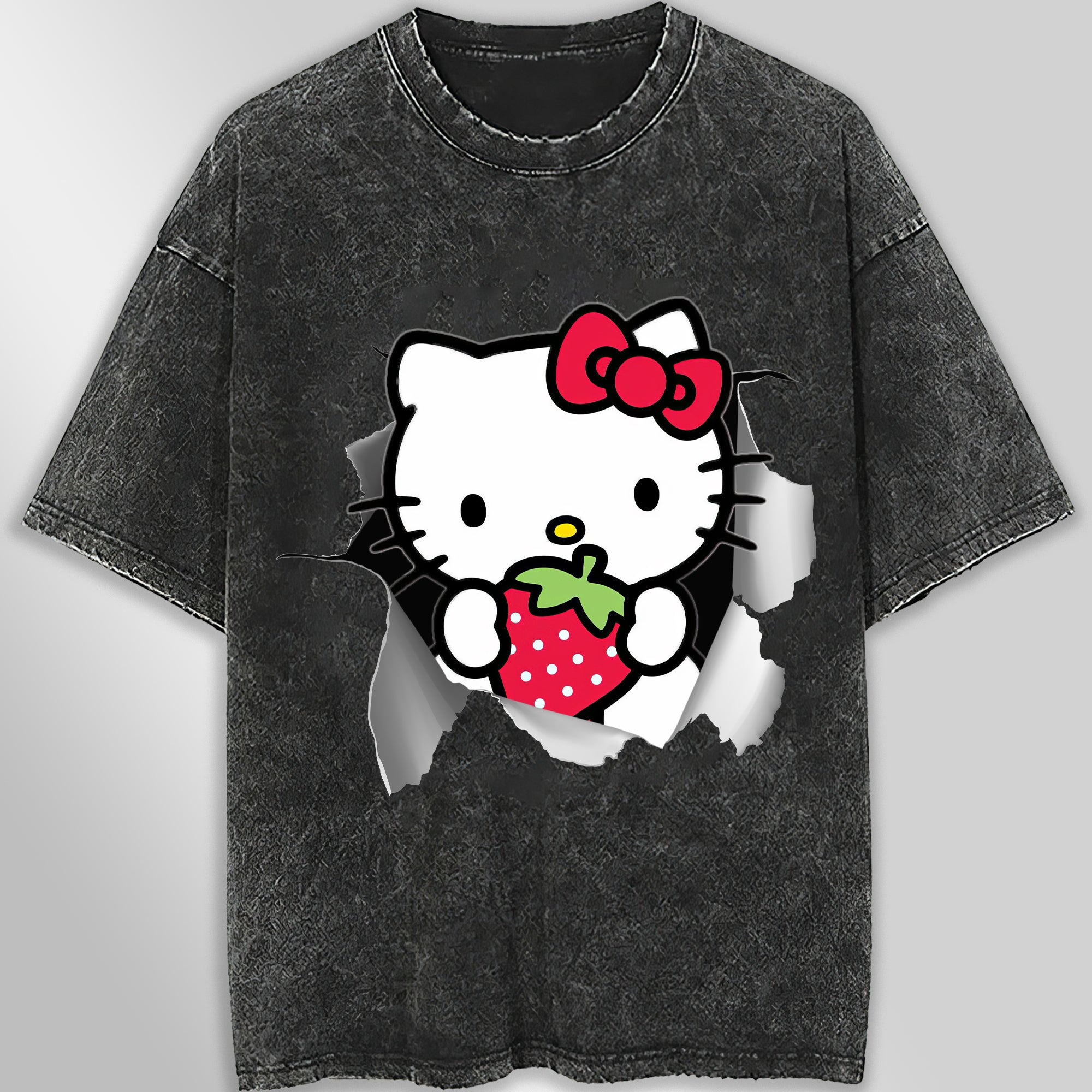 Hello kitty tee shirt - Strawberry hello kitty cute funny graphic tees - Unisex wide sleeve style
