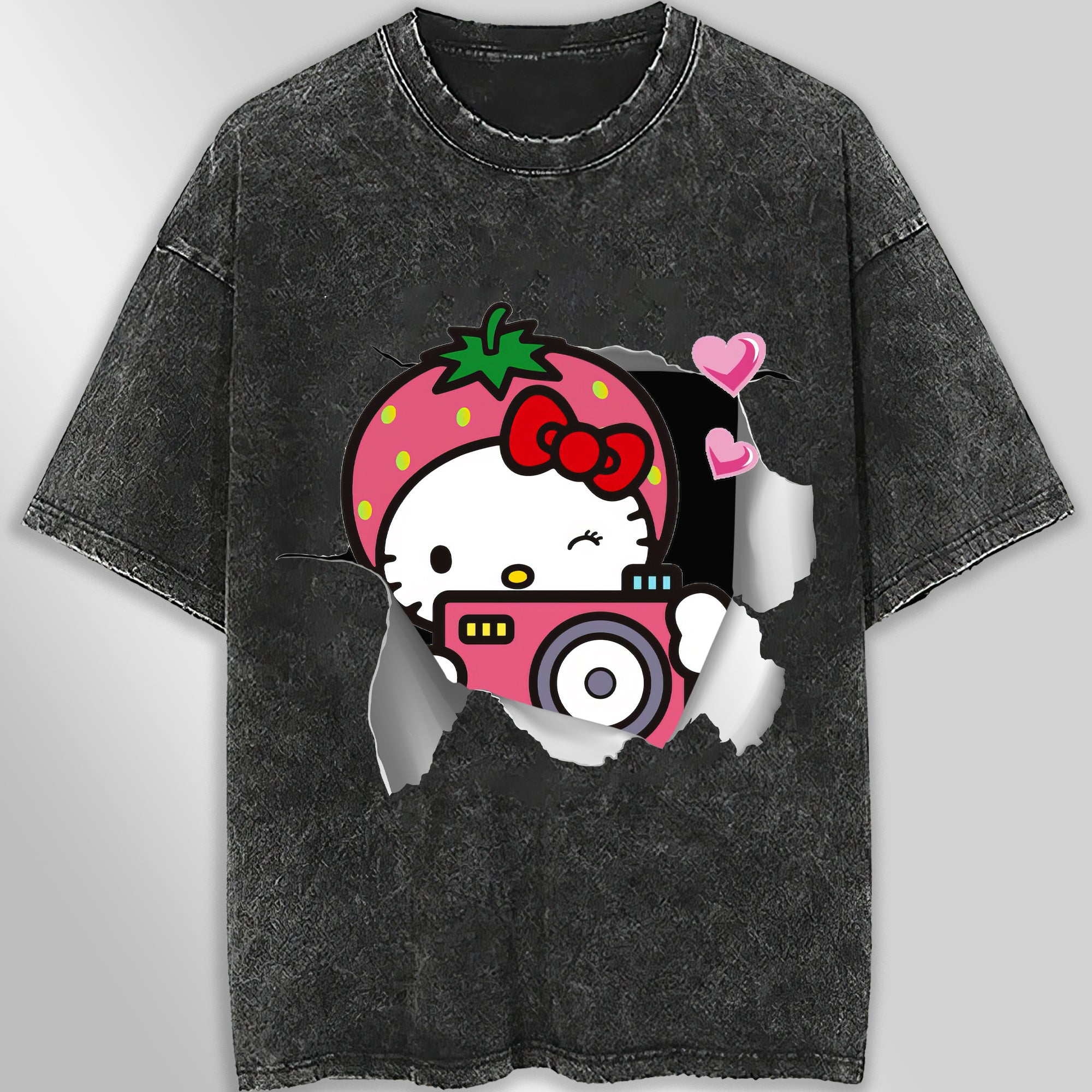 Hello kitty tee shirt - Strawberry hello kitty cute funny graphic tees - Unisex wide sleeve style SALE