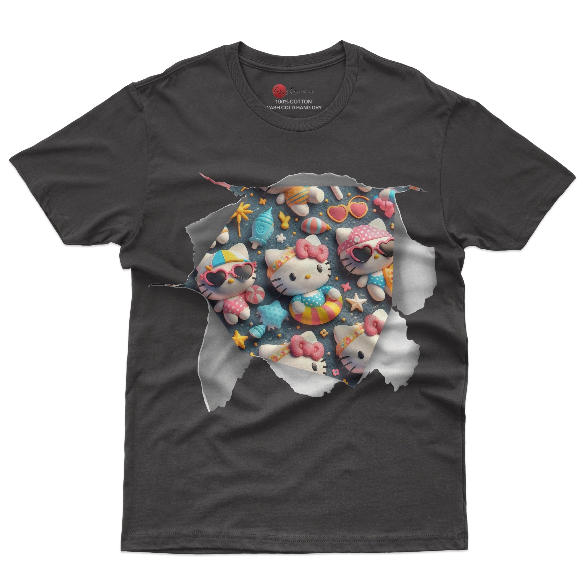 Introducing our Hello Kitty tee shirt, perfect for summer! Made from soft, breathable cotton, this unisex novelty t-shirt features a cute and funny graphic design. Show off your love for Hello Kitty while staying comfortable and stylish. Available now.