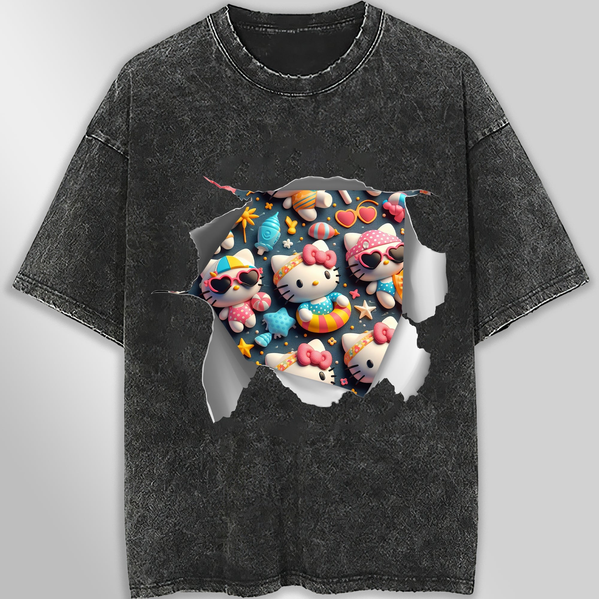 Hello kitty tee shirt - Summer cute funny graphic tees - Unisex wide sleeve style
