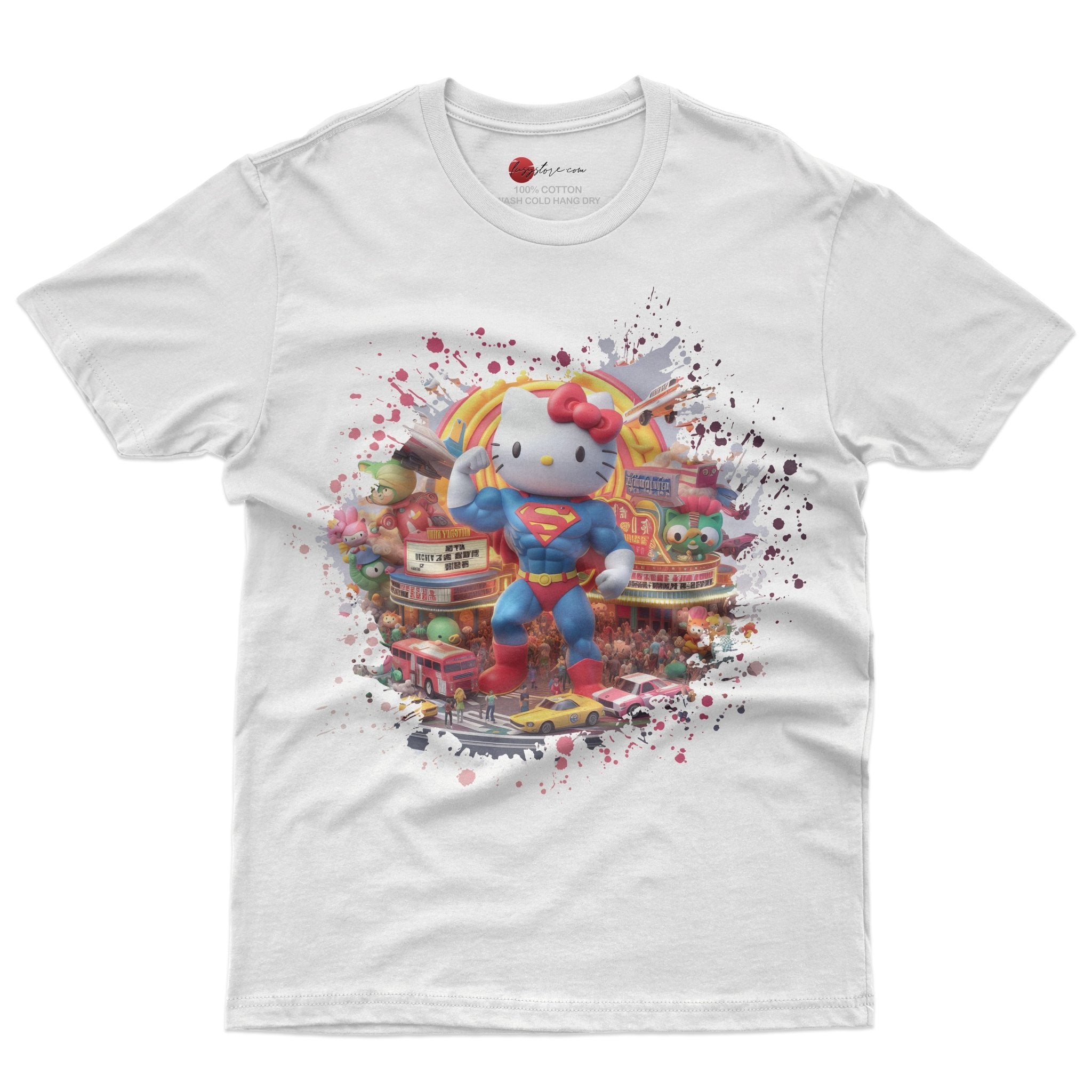 This adorable Hello Kitty tee shirt features a playful Supperman graphic that will make you stand out from the crowd. Made from high-quality cotton, this unisex tee offers both style and comfort. Perfect for fans of Hello Kitty and anyone looking for a unique novelty t-shirt.