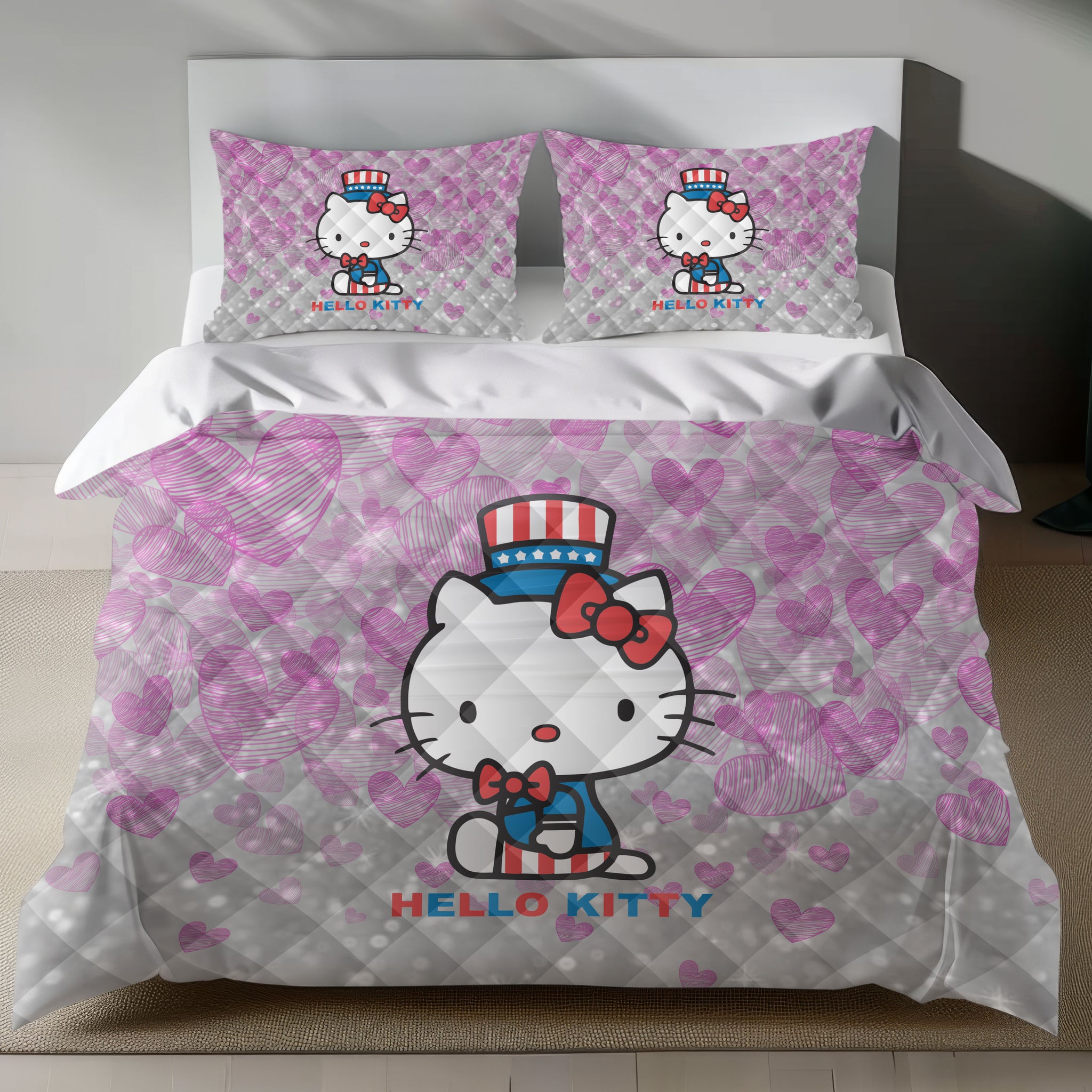 Add a touch of charm and comfort to your bedroom with the Hello Kitty Bedding Set from Lusy Store. Designed for Hello Kitty fans, this adorable pink bedding set features a vibrant digital print of Hello Kitty in a patriotic outfit, surrounded by playful hearts. Perfect for creating a lovely and cozy atmosphere, this bedding set combines style, comfort, and quality to elevate your sleep experience.