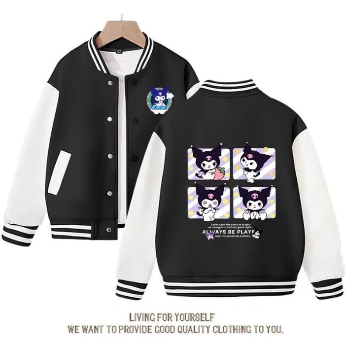 Kuromi Jacket Baseball Cotton Long Sleeve Sanrio Cartoon Casual Cute Student Coat Anime Spring Black