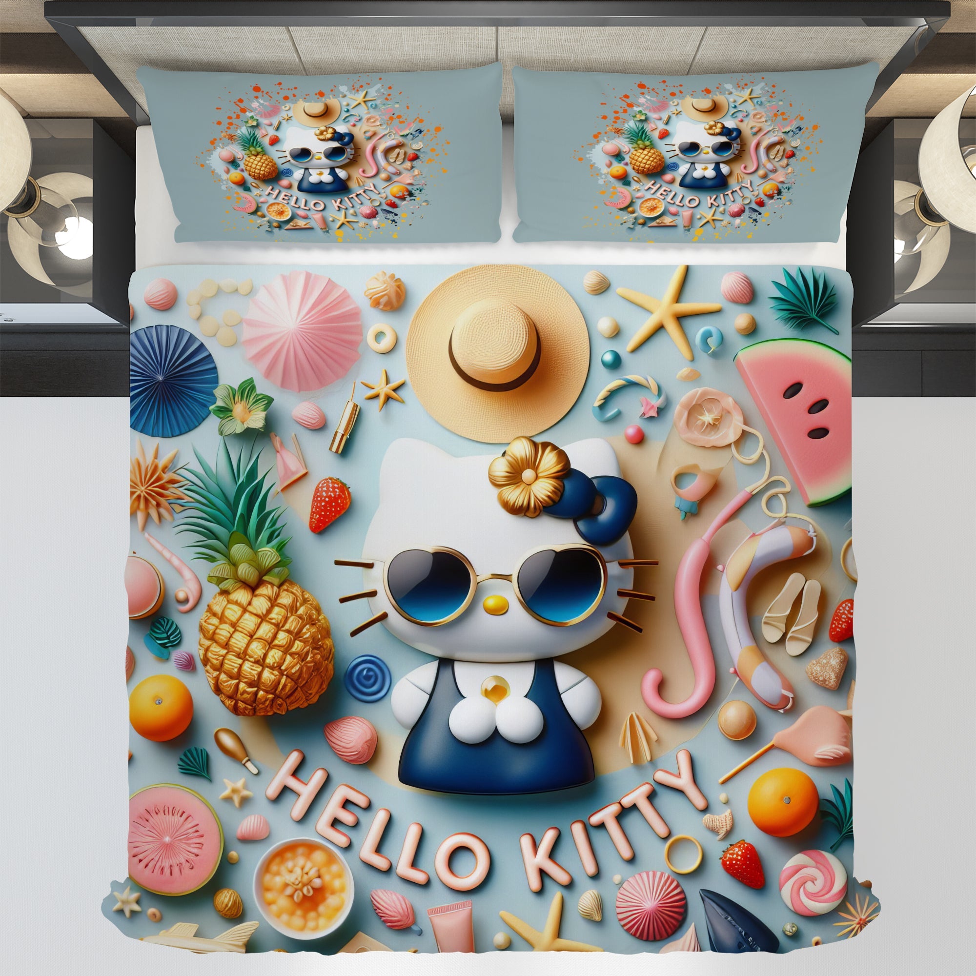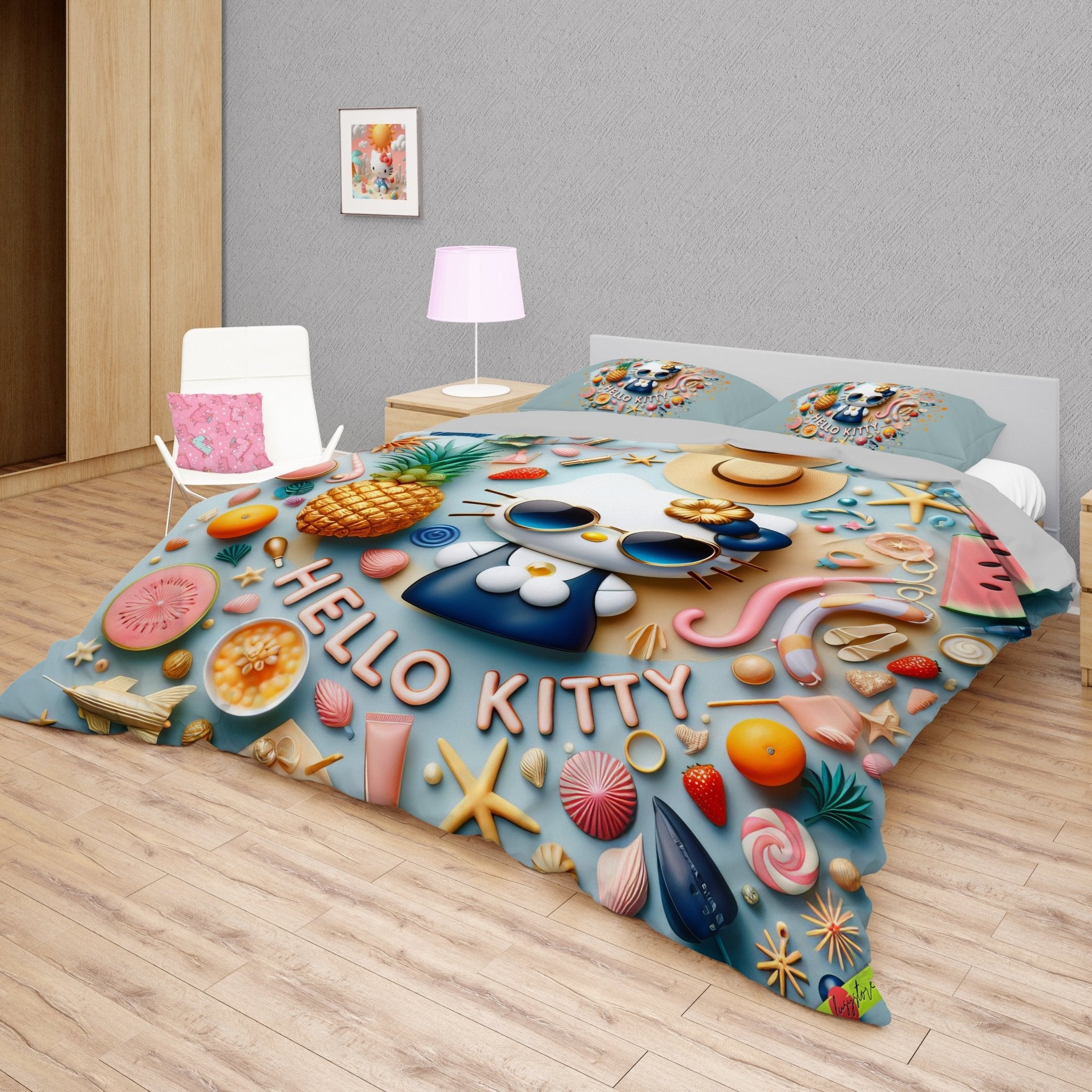 Summer bedding sets - Cool Hello Kitty bed linen 3D bedroom - Cute duvet cover and pillowcase
