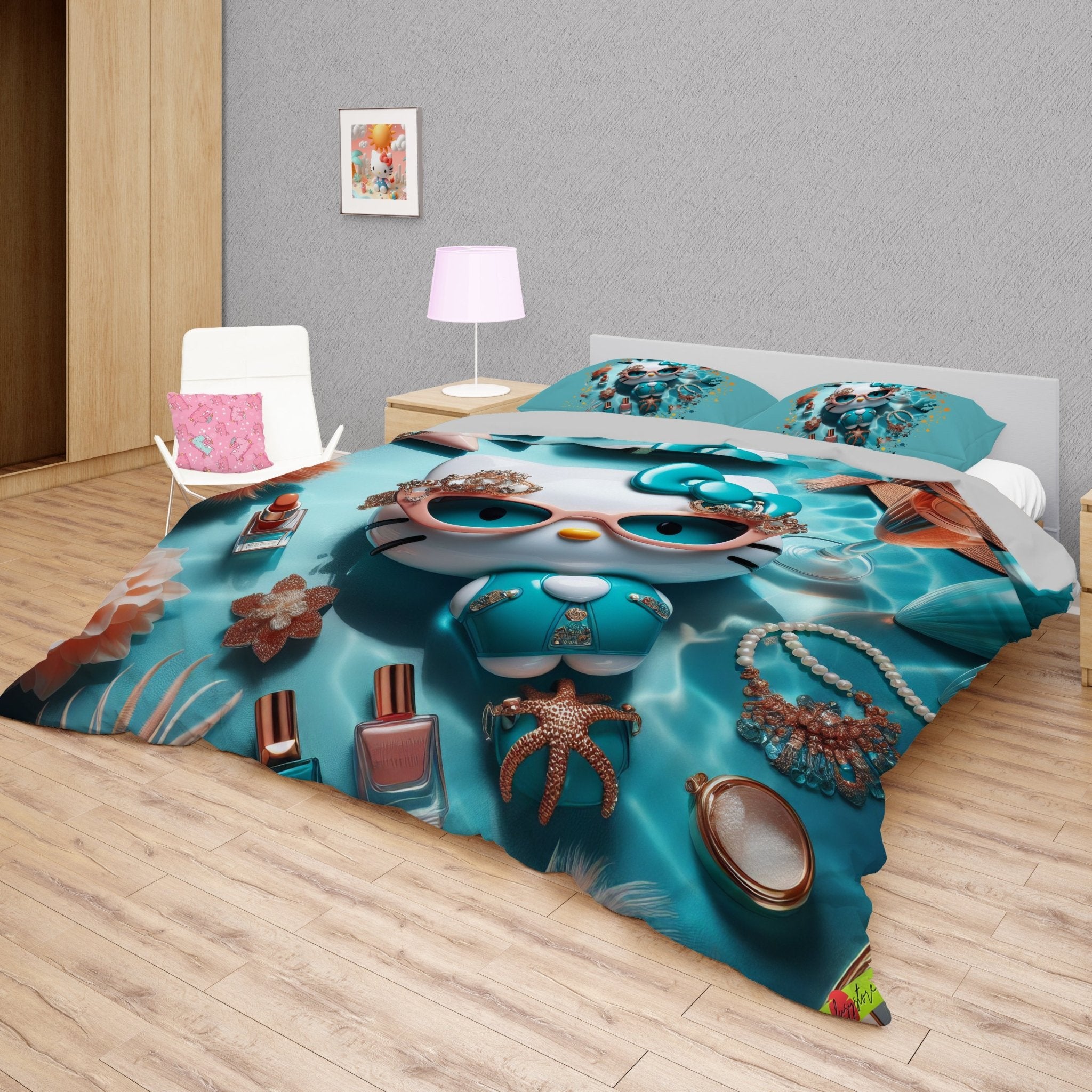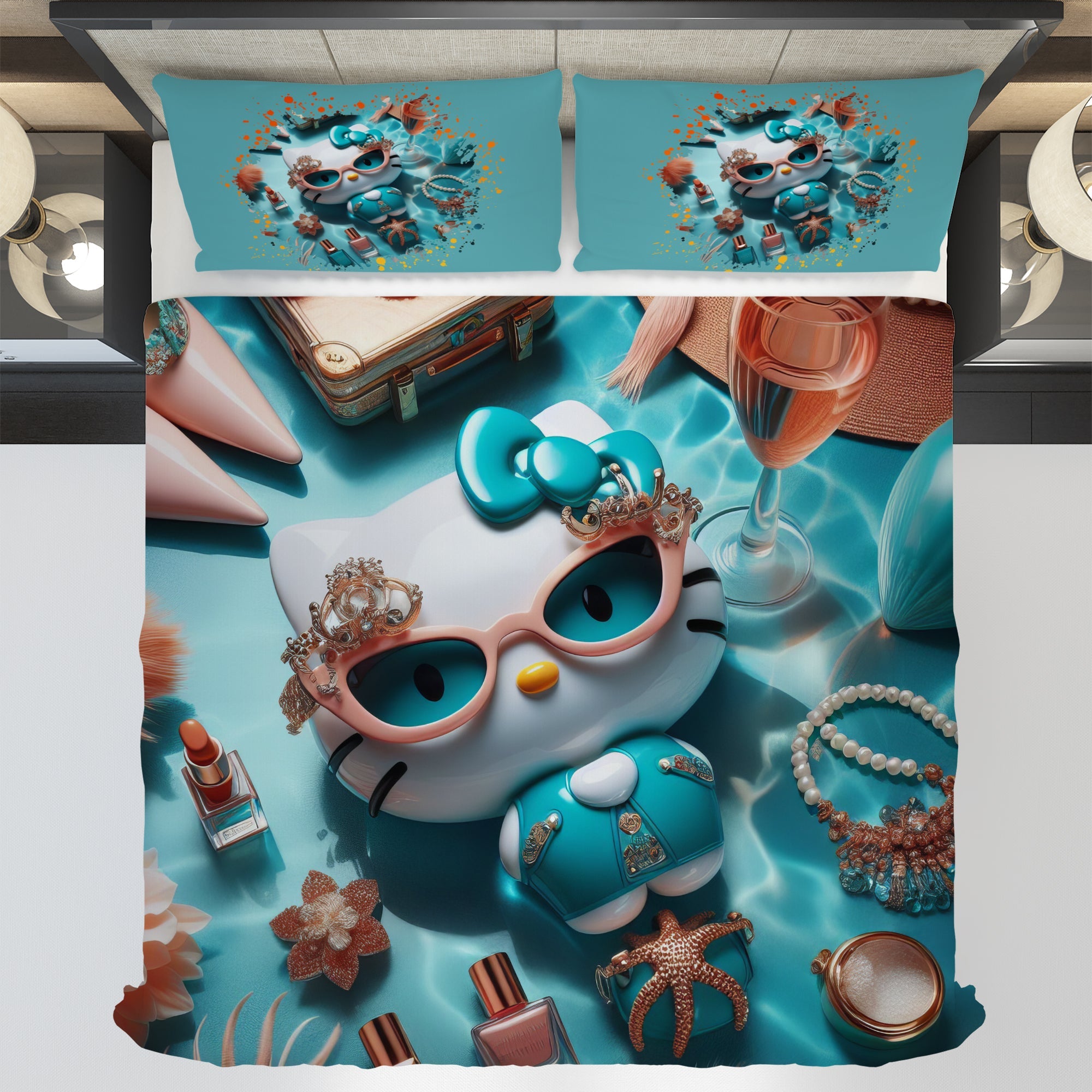Transform your bedroom into a cute and cool sanctuary with our Summer bedding sets. This set features a 3D Hello Kitty design on soft and comfortable bed linen, complete with a matching duvet cover and pillowcase. Elevate your sleep experience and showcase your love for Hello Kitty with this adorable bedding.