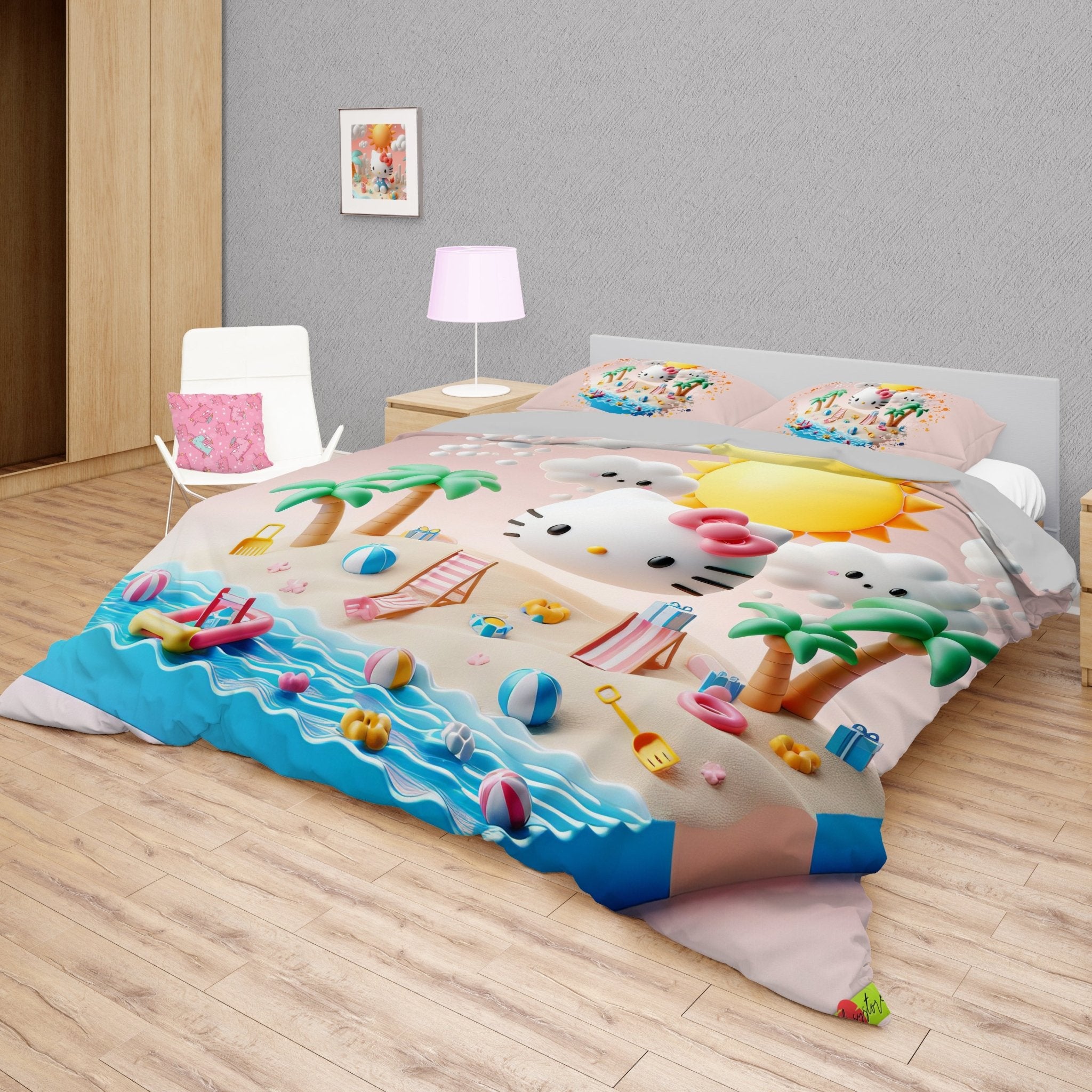 Transform your bedroom into a summer sanctuary with our Hello Kitty 3D bedding sets. Designed to keep you cool and comfortable, our cute duvet cover and pillowcase set will provide a touch of whimsy to your bedroom. Made with high-quality materials, you'll enjoy a peaceful and restful sleep every night.