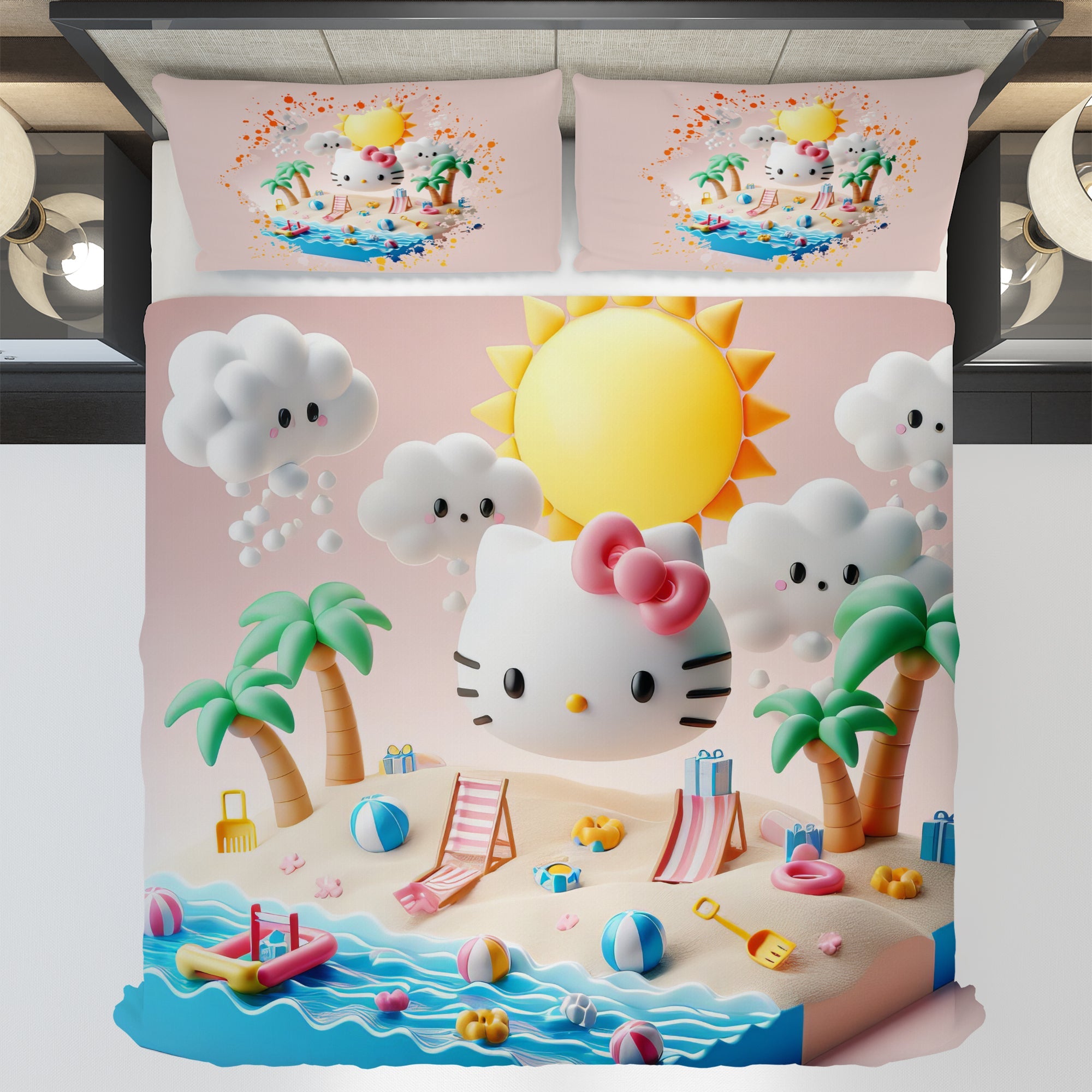 Summer bedding sets - Hello Kitty bed linen 3D bedroom - Cute duvet cover and pillowcase SALE