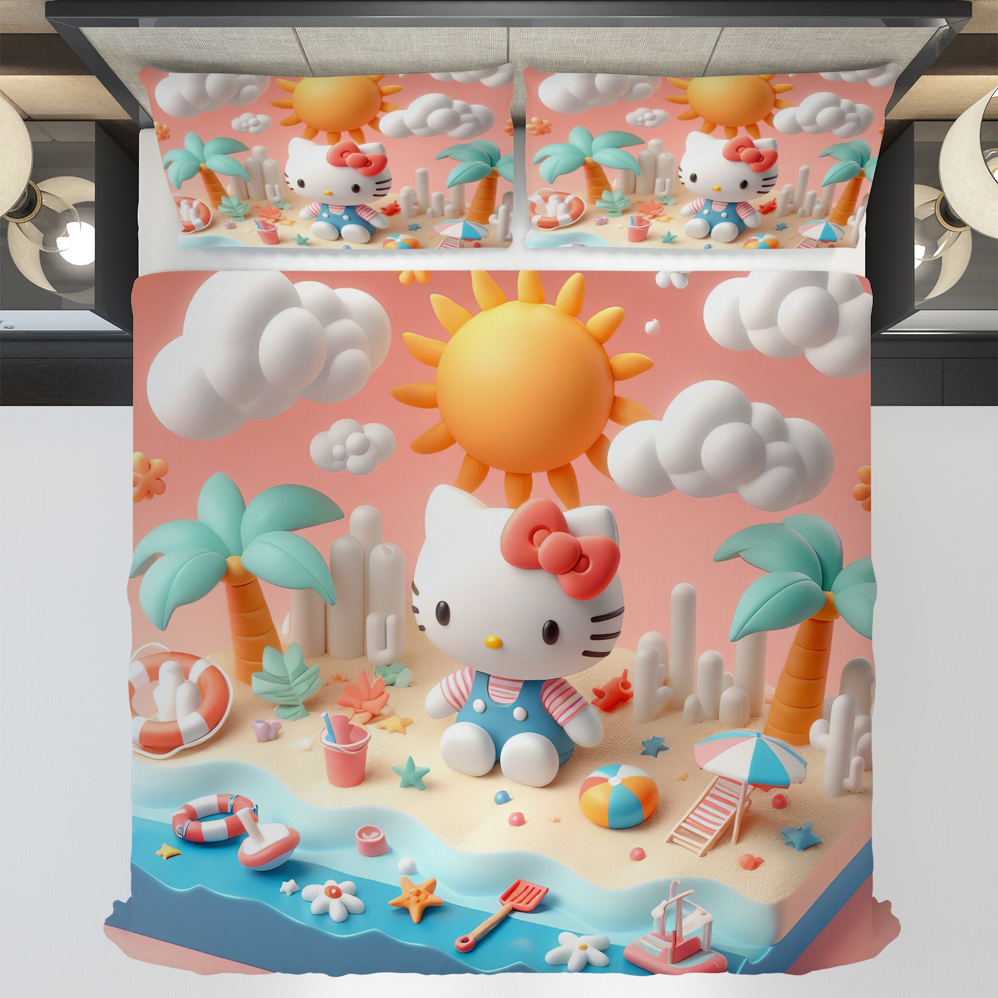 Summer bedding sets - Hello Kitty bed linen 3D cute bedroom - Duvet cover and pillowcase Bedding Set (3pcs) SALE