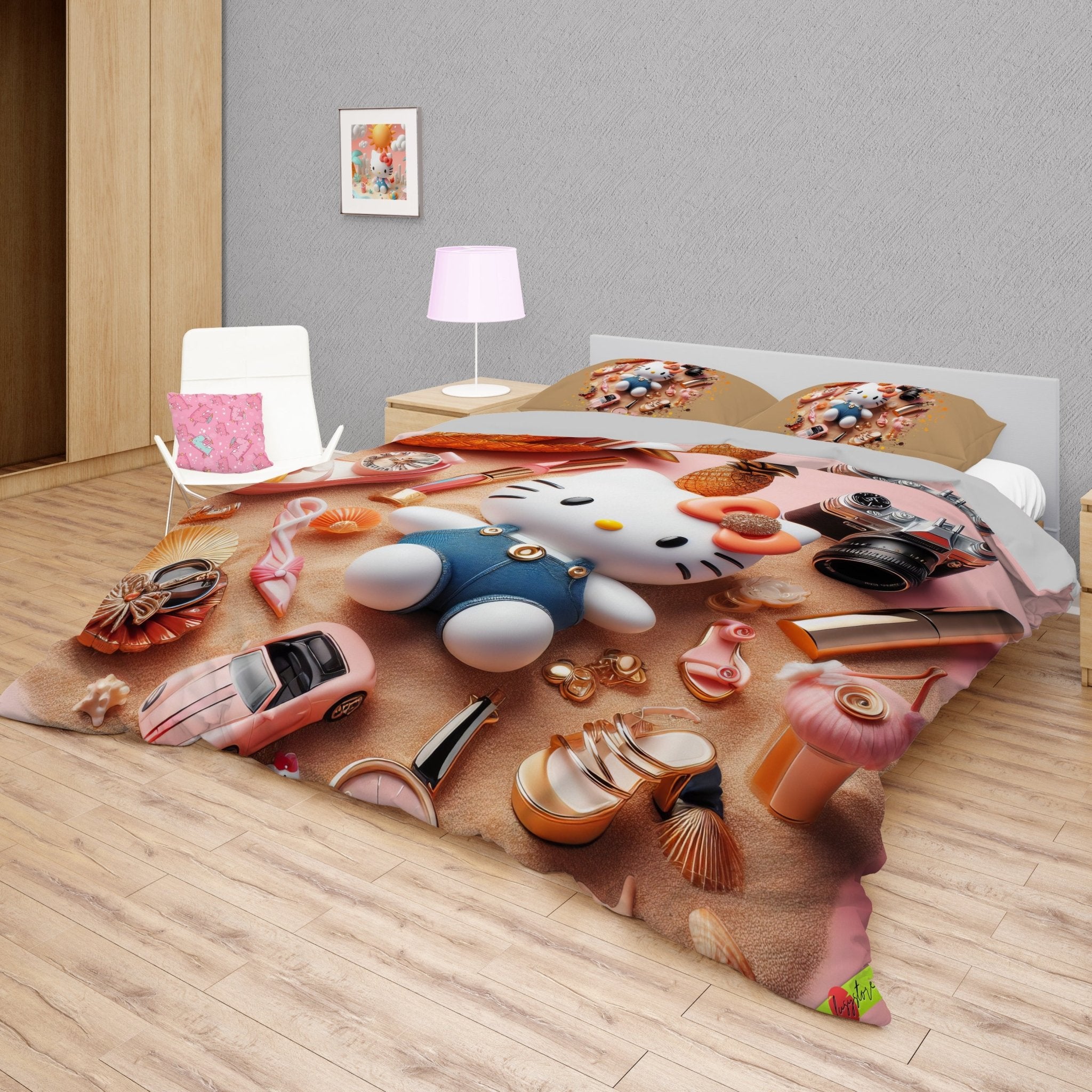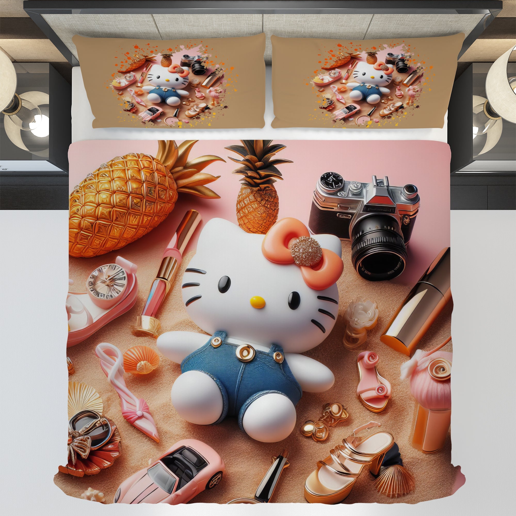 Transform your bedroom into a stylish sanctuary with our Summer bedding sets. Made with luxury Hello Kitty bed linen, our 3D bedroom set includes a cute duvet cover and pillowcase. Elevate your sleep with the perfect blend of comfort and cuteness.