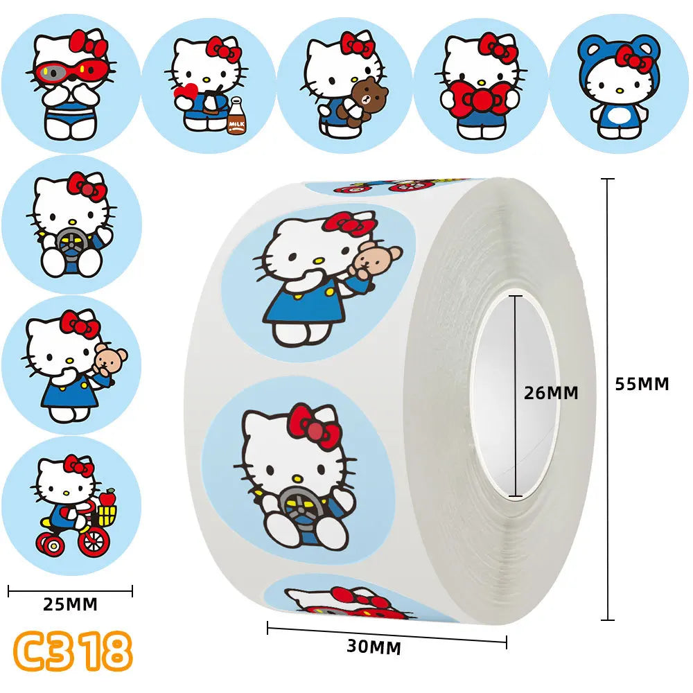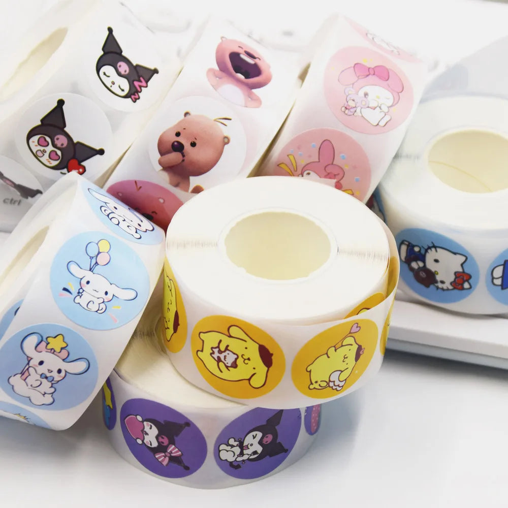 500Pcs/roll New Kawaii Sanrio Sticker Cute Cinnamoroll Kuromi Hello Kitty Cartoon Kids Reward Stickers Gift Decor Decals Toys