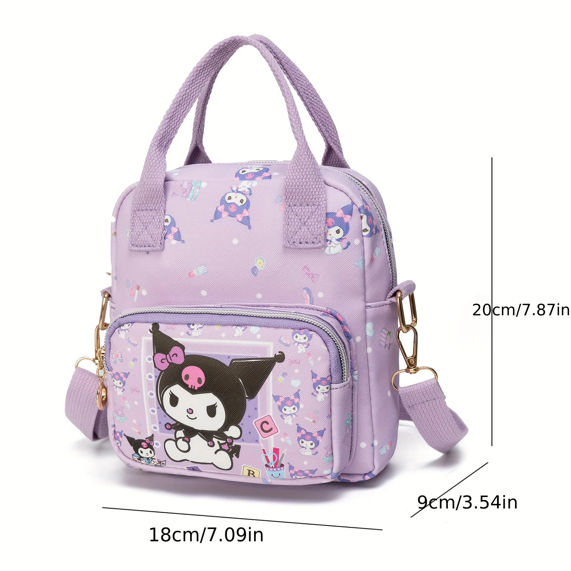 This adorable Sanrio-themed leather messenger bag combines charm and practicality for everyday use. Featuring beloved characters like Hello Kitty, Kuromi, Melody, and Cinnamoroll, it brightens up your look while keeping essentials organized. Designed for students and anyone on the go, its versatile shoulder strap lets you wear it comfortably as a crossbody or shoulder bag. Durable yet cute, this bag is a perfect companion for daily school or casual outings.