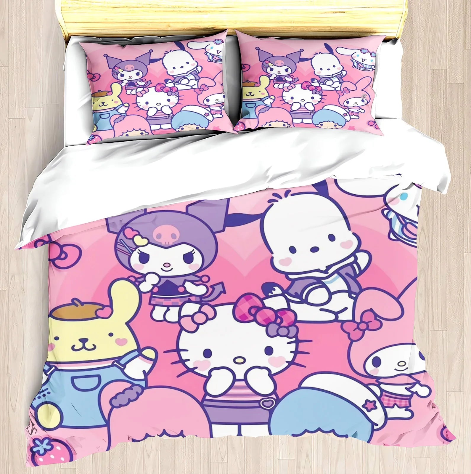 Modern Duvet Cover Home Cute Sanrio Kuromi Melody Children Bedding Set Girl's Gift Mattress 3 Piece