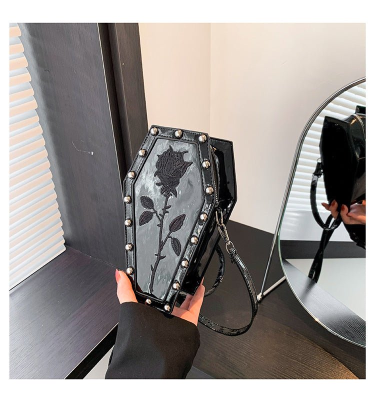 Gothic Style Halloween Coffin Shoulder Bag: European/American Dark Personality Ghost-inspired Design Rose Black SALE