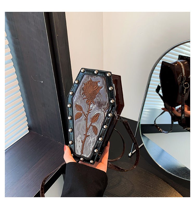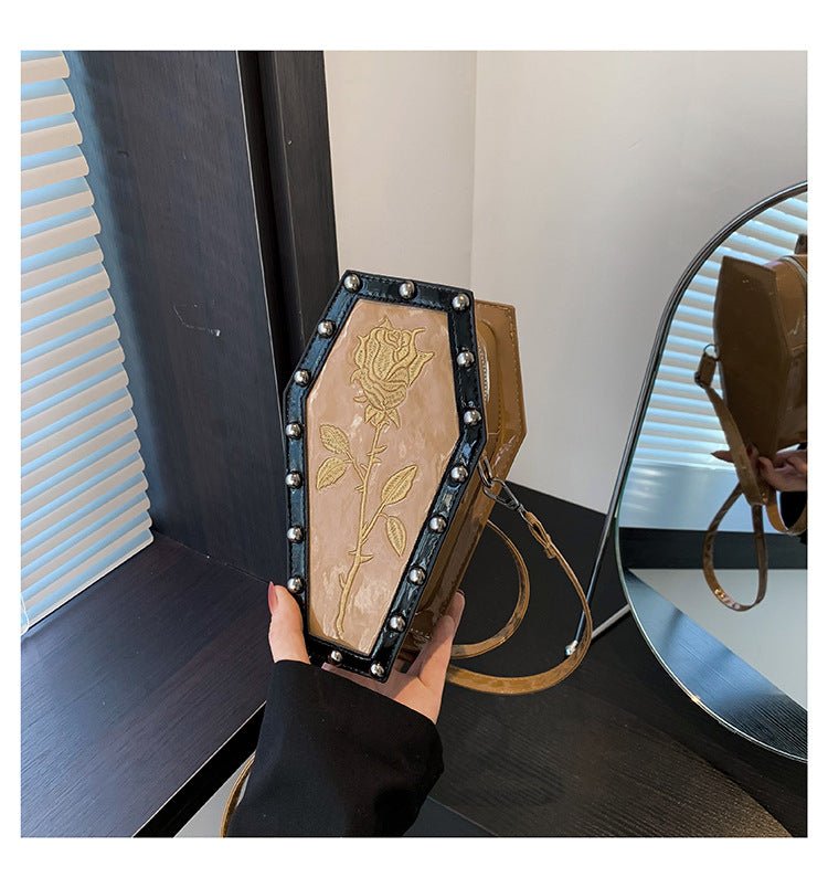 Gothic Style Halloween Coffin Shoulder Bag: European/American Dark Personality Ghost-inspired Design Rose Coffee SALE