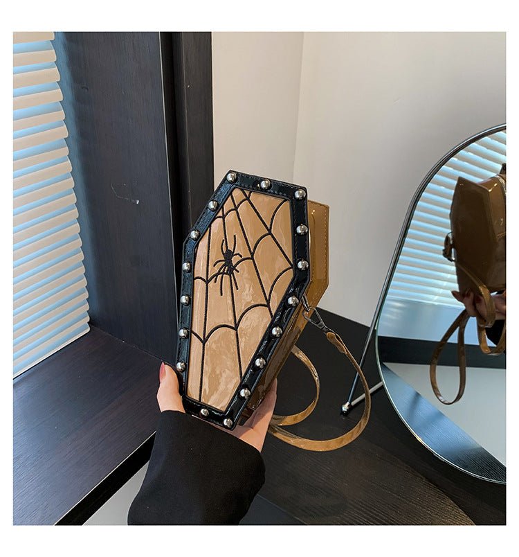 Gothic Style Halloween Coffin Shoulder Bag: European/American Dark Personality Ghost-inspired Design Spider Web Coffee SALE