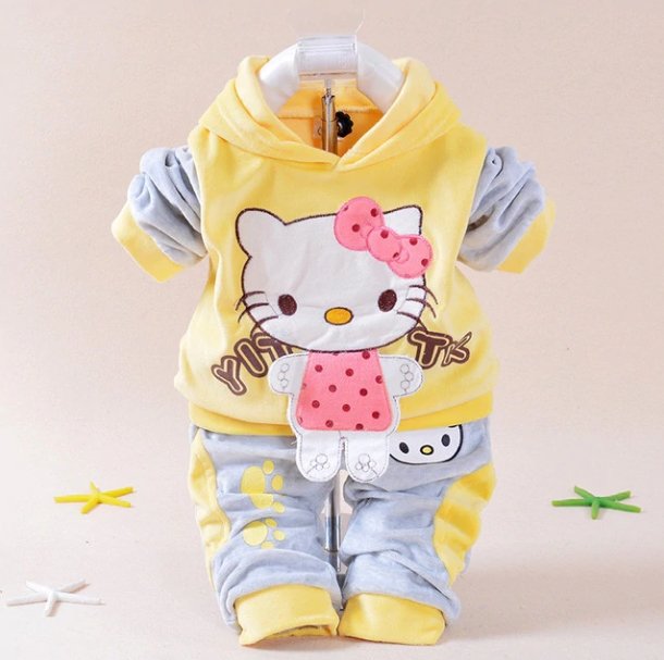 Baby Girls Clothing Set Cartoon Hello Kitty Winter Autumn Children Clothing Yellow SALE