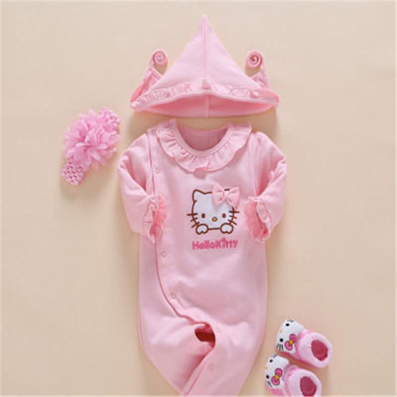 Hello Kitty Baby Girls Romper Flower Headband Crib Socks Hat 4PCS Infant Clothes Set